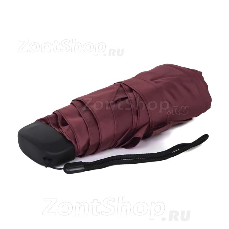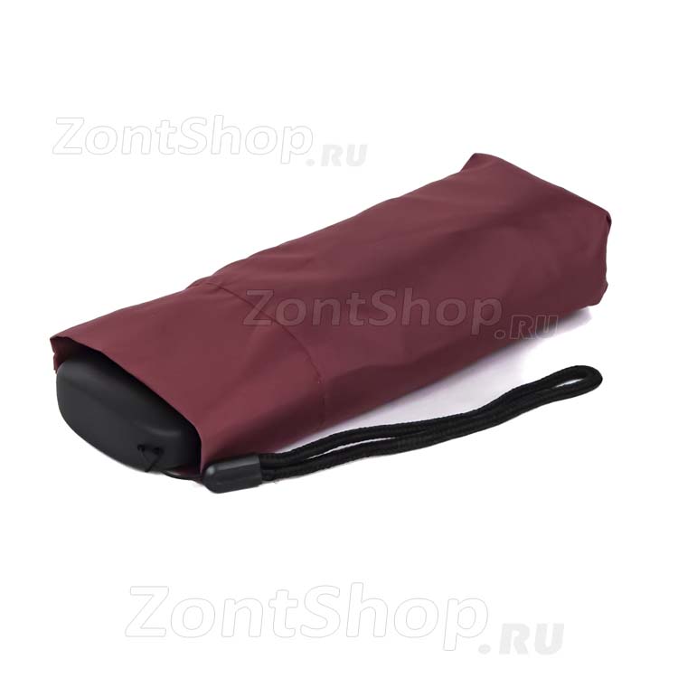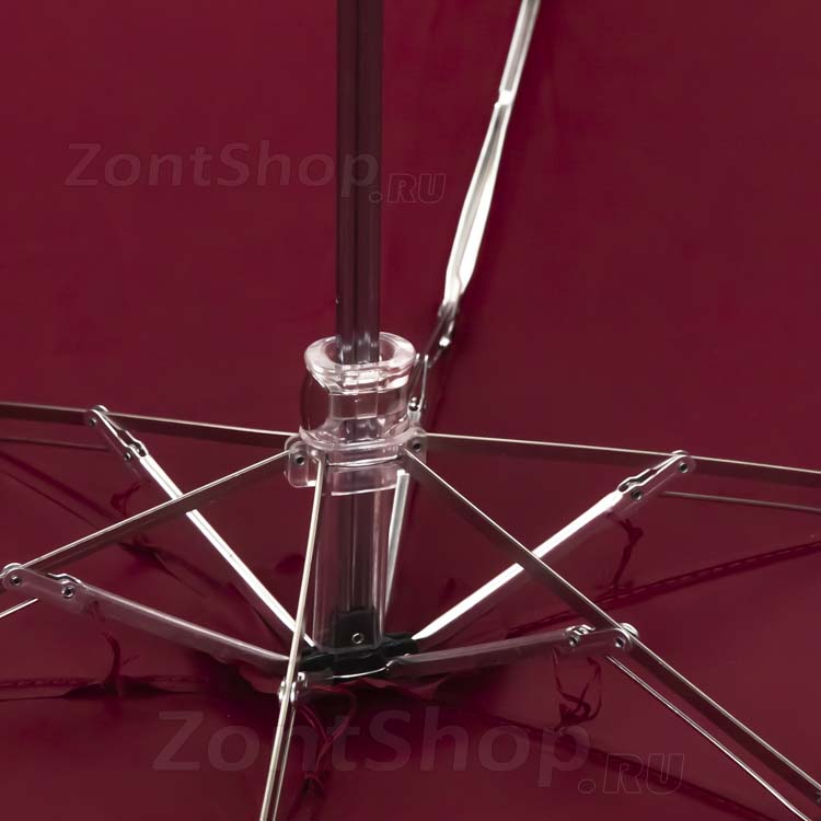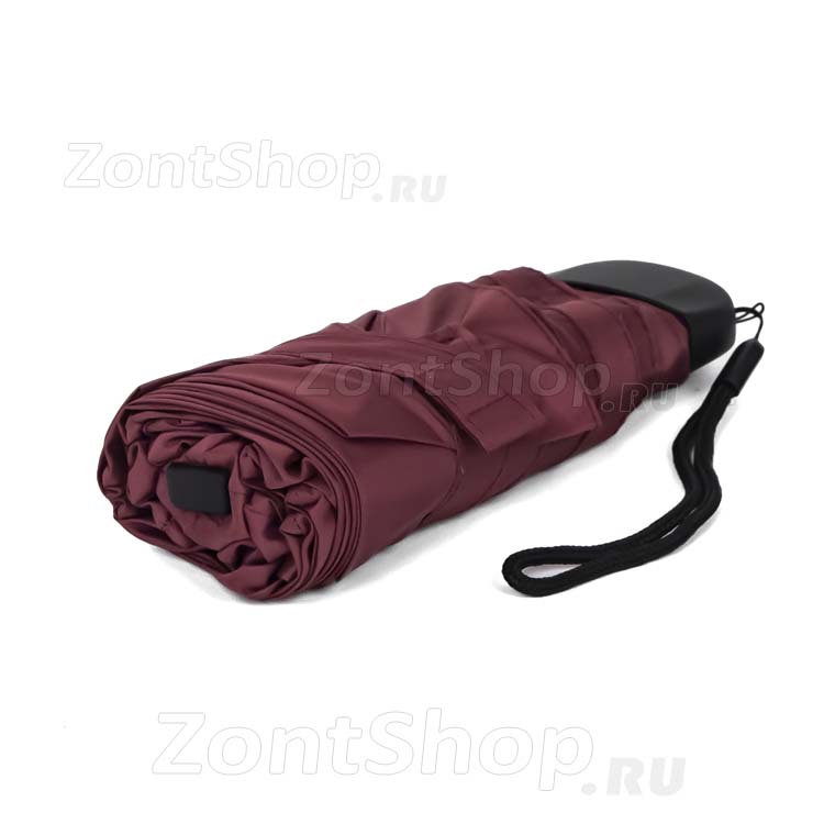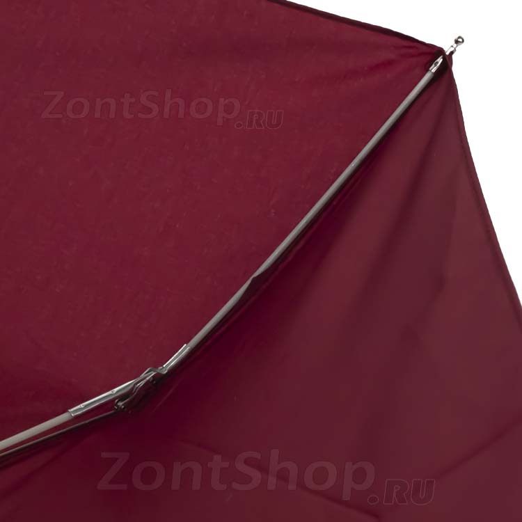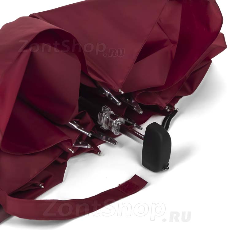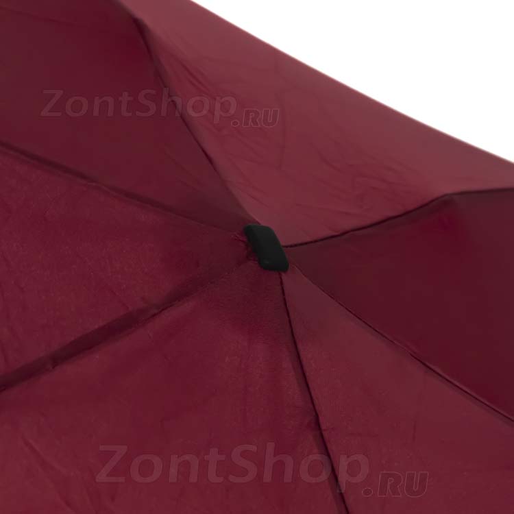 Зонт однотонного цвета бордо от компании ArtRain смотрится очень презентабельно. Ручка плоской формы выполнена из пластика черного цвета. Концы спиц заправляются в выемку рукояти.