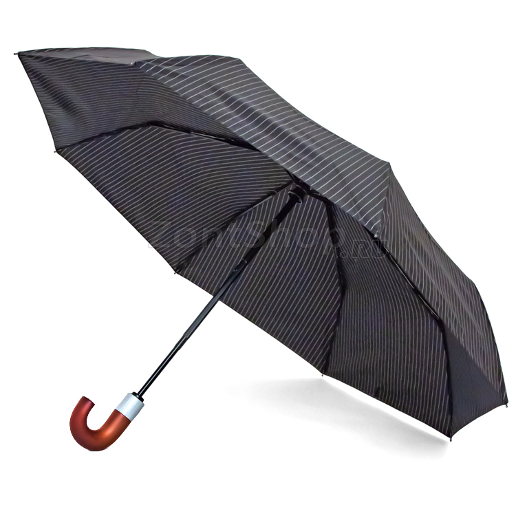 Полный Автомат - гарантирует легкое и комфортное управление, поскольку нажатием всего одной кнопки купол можно открыть или закрыть. При полном сложении изделия, купол фиксирует специальный хлястик на металлической кнопке.Ручка - крюк, одна из самых удобных, выполнена из дерева и придает изделию солидности и органичный внешний вид. Она гладкая и приятная руке на ощупь.Ткань купола - полиэстер с пропиткой, которая успешно противостоит воздействию воды, пыли и грязи.Каркас зонта - полностью стальной на 8-ми спицах обеспечивает долгий срок службы изделию.Чехол - стандартный с украшением в виде серебристой подвески с логотипом компании. Для удобства переноски и хранения, в случае сильно мокрого зонта затруднит протекание и намокание сумки.Антиветер - защищает зонт от поломок. Пружинки в конструкции спиц не дают креплениям ломаться, позволяя им выворачиваться в обратную сторону и возвращаться на место. Но обращаем ваше внимание, что зонт не рекомендуется использовать при порывах ветра (особенно разнонаправленного), так как он может сломаться. И случай не будет являться гарантийным.ДЛЯ КОГОЭтот зонт по достоинству оценит каждый мужчина. Качественное исполнение данного аксессуара, обеспечит Вам долговременное пользование на многие сезоны.УХОД И ХРАНЕНИЕПосле использования зонт необходимо просушить. После того как зонт высохнет, сложите купол, аккуратно расправляя складки ткани купола. Затем без усилий стянуть хлястиком и убрать сложенный зонт в чехол. Хранить в сухом месте с плюсовой температурой, не допускать складирования сверху зонта других предметов, способных повредить каркас и купол зонта.Возможные загрязнения отмывайте без усилий, теплым мыльным раствором (использование горячей воды, пятновыводителей и других агрессивных жидкостей не допускается).Только в нашем специализированном розничном магазине зонтов и в сравнении с другими аналогами, вы можете оценить качественное преимущество этого зонта, которое не видно по картинке. Характеристики