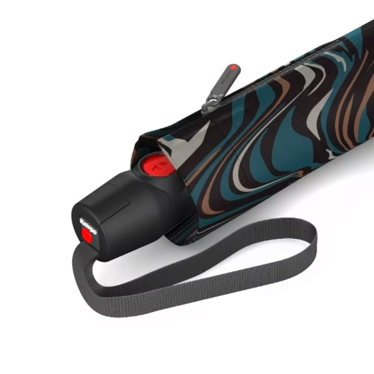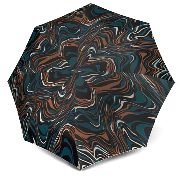 Облегченный женский зонт в 3-сложения в сочетании черных, синих, коричневых, голубых оттенков с волнообразным абстрактным рисунком, благодаря которому, аксессуар смотрится довольно необычно, представляет компания Knirps. Вся продукция компании разработана и спроектирована в Германии и протестирована во внешних лабораториях, таких как TÜV*. Красная точка является отличительной маркой немецкого бренда зонтов. Благодаря использованию материалов высочайшего качества, в сочетании с их точной обработкой, зонт Knirps серии Т.200 является настоящим чудом надежности. В дополнение к надежности зонта, добавляется долговечность, благодаря оптимальному выбору материалов и способности деформироваться за счет отказа от переработанного пластика. Подробнее о бренде Knirps...