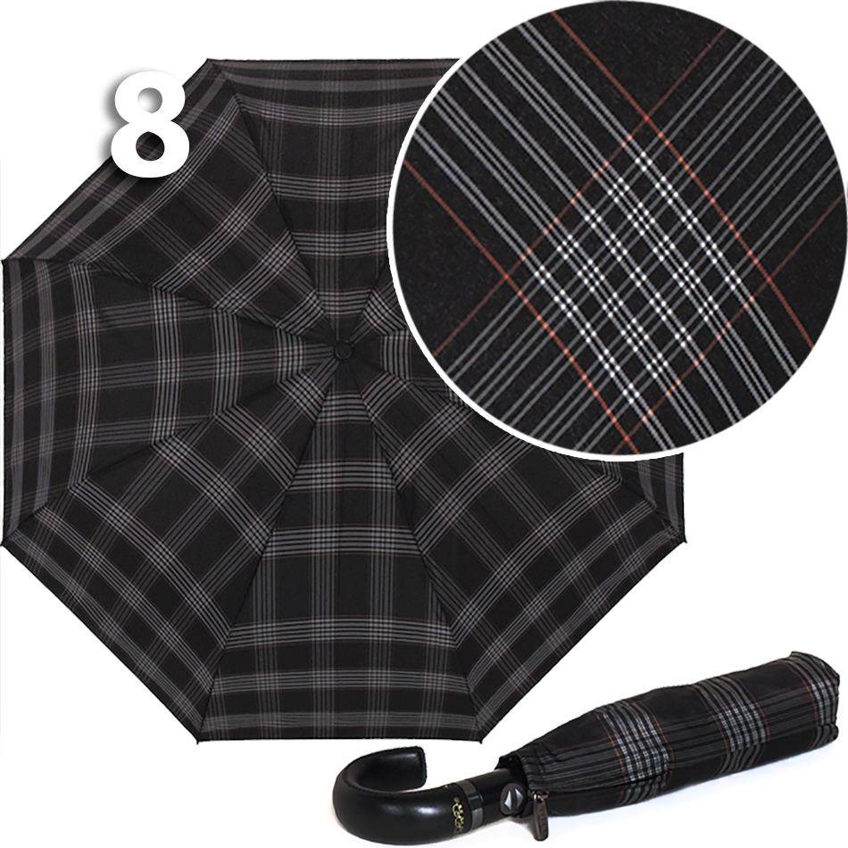 Полный Автомат - гарантирует легкое и комфортное управление, поскольку нажатием всего одной кнопки купол можно открыть или закрыть. При полном сложении изделия, купол фиксирует специальный хлястик на металлической кнопке.Ручка - крюк, одна из самых удобных, выполнена из экокожи, что добавляет аксессуару особого шарма.Ткань купола - полиэстер со специальной водоотталкивающей пропиткой, которая успешно противостоит воздействию воды, пыли и грязи. Тип переплетения нитей «эпонж»- особая структура плетения, способная отталкивать воду. За счет неравномерного распределения нитей, образовываются узелки. Поверхность получается, как бы губчатой, на ней не задерживается влага - стекает вниз..яет.Каркас зонта - на 8-ми спицах из высокопрочных материалов, обеспечивает долгий срок службы изделию.Чехол – на молнии идет в комплекте, для удобства переноски и хранения, в случае сильно мокрого зонта затруднит протекание и намокание сумки.Антиветер – защищает зонт от поломок. Пружинки в конструкции спиц не дают креплениям ломаться, позволяя им выворачиваться в обратную сторону и возвращаться на место. Но обращаем ваше внимание, что зонт не рекомендуется использовать при порывах ветра (особенно разнонаправленного), так как он может сломаться. И случай не будет являться гарантийным.ДЛЯ КОГОДля тех, кто ценит высокое качество. Незаменимая защита на случай затяжных осадков. Прекрасный подарок, который удивит и будет по достоинству оценен в процессе эксплуатации.УХОД И ХРАНЕНИЕПосле использования зонт необходимо просушить. После того как зонт высохнет, сложите купол, аккуратно расправляя складки ткани купола. Затем без усилий стянуть хлястиком и убрать сложенный зонт в чехол. Хранить в сухом месте с плюсовой температурой, не допускать складирования сверху зонта других предметов, способных повредить каркас и купол зонта.Возможные загрязнения отмывайте без усилий, теплым мыльным раствором (использование горячей воды, пятновыводителей и других агрессивных жидкостей не допускается).Только в нашем специализированном розничном магазине зонтов и в сравнении с другими аналогами, вы можете оценить качественное преимущество этого зонта, которое не видно по картинке. Характеристики