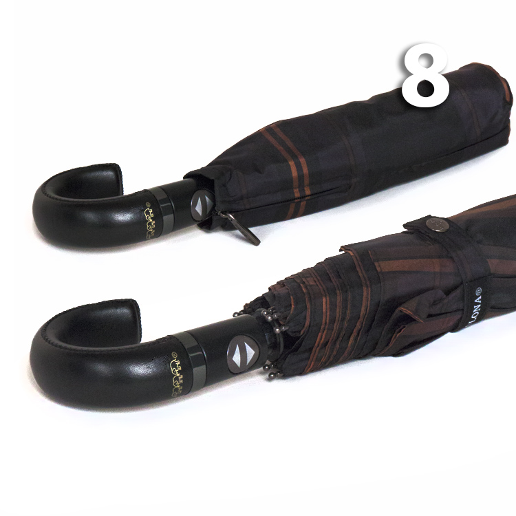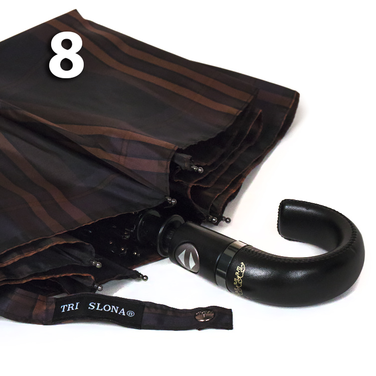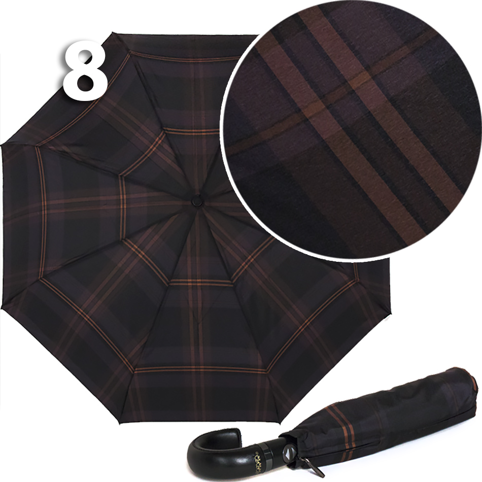 Полный Автомат - гарантирует легкое и комфортное управление, поскольку нажатием всего одной кнопки купол можно открыть или закрыть. При полном сложении изделия, купол фиксирует специальный хлястик на металлической кнопке.Ручка - крюк, одна из самых удобных, выполнена из коричневой экокожи оригинальной текстуры, что добавляет аксессуару особого шарма.Ткань купола - полиэстер со специальной водоотталкивающей пропиткой, которая успешно противостоит воздействию воды, пыли и грязи. Тип переплетения нитей «эпонж»- особая структура плетения, способная отталкивать воду. За счет неравномерного распределения нитей, образовываются узелки. Поверхность получается, как бы губчатой, на ней не задерживается влага - стекает внизКаркас зонта - на 8-ми спицах из высокопрочных материалов, обеспечивает долгий срок службы изделию.Чехол – на молнии идет в комплекте, для удобства переноски и хранения, в случае сильно мокрого зонта затруднит протекание и намокание сумки.Антиветер – защищает зонт от поломок. Пружинки в конструкции спиц не дают креплениям ломаться, позволяя им выворачиваться в обратную сторону и возвращаться на место. Но обращаем ваше внимание, что зонт не рекомендуется использовать при порывах ветра (особенно разнонаправленного), так как зонтик может сломаться. И случай не будет считаться гарантийным.ДЛЯ КОГОДля тех, кто ценит высокое качество. Незаменимая защита на случай затяжных осадков. Прекрасный подарок, который удивит и будет по достоинству оценен в процессе эксплуатации.УХОД И ХРАНЕНИЕПосле использования зонт необходимо просушить. После того как зонт высохнет, сложите купол, аккуратно расправляя складки ткани купола. Затем без усилий стянуть хлястиком и убрать сложенный зонт в чехол. Хранить в сухом месте с плюсовой температурой, не допускать складирования сверху зонта других предметов, способных повредить каркас и купол зонта.Возможные загрязнения отмывайте без усилий, теплым мыльным раствором (использование горячей воды, пятновыводителей и других агрессивных жидкостей не допускается).Только в нашем специализированном розничном магазине зонтов и в сравнении с другими аналогами, вы можете оценить качественное преимущество этого зонта, которое не видно по картинке. Характеристики