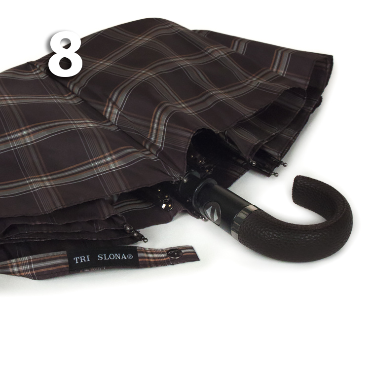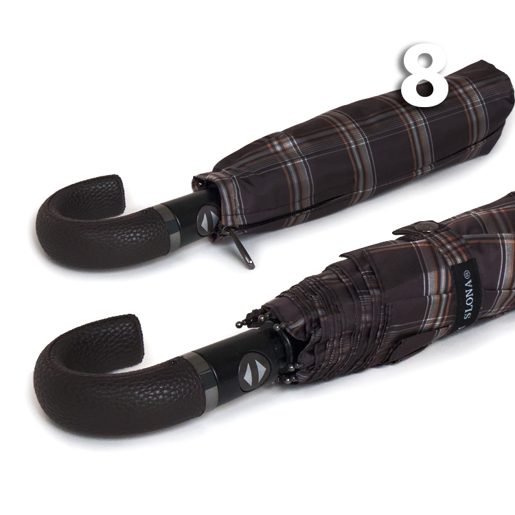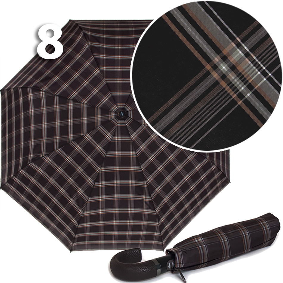 Полный Автомат - гарантирует легкое и комфортное управление, поскольку нажатием всего одной кнопки купол можно открыть или закрыть. При полном сложении изделия, купол фиксирует специальный хлястик на металлической кнопке.Ручка - крюк, одна из самых удобных, выполнена из коричневой экокожи оригинальной текстуры, что добавляет аксессуару особого шарма.Ткань купола - полиэстер со специальной водоотталкивающей пропиткой, которая успешно противостоит воздействию воды, пыли и грязи. Тип переплетения нитей «эпонж»- особая структура плетения, способная отталкивать воду. За счет неравномерного распределения нитей, образовываются узелки. Поверхность получается, как бы губчатой, на ней не задерживается влага - стекает вниз.Каркас зонта - на 8-ми спицах из высокопрочных материалов, обеспечивает долгий срок службы изделию.Чехол – на молнии идет в комплекте, для удобства переноски и хранения, в случае сильно мокрого зонта затруднит протекание и намокание сумки.Антиветер – защищает зонт от поломок. Пружинки в конструкции спиц не дают креплениям ломаться, позволяя им выворачиваться в обратную сторону и возвращаться на место. Но обращаем ваше внимание, что зонт не рекомендуется использовать при порывах ветра (особенно разнонаправленного), так как зонтик может сломаться. И случай не будет считаться гарантийным.ДЛЯ КОГОДля тех, кто ценит высокое качество. Незаменимая защита на случай затяжных осадков. Прекрасный подарок, который удивит и будет по достоинству оценен в процессе эксплуатации.УХОД И ХРАНЕНИЕПосле использования зонт необходимо просушить. После того как зонт высохнет, сложите купол, аккуратно расправляя складки ткани купола. Затем без усилий стянуть хлястиком и убрать сложенный зонт в чехол. Хранить в сухом месте с плюсовой температурой, не допускать складирования сверху зонта других предметов, способных повредить каркас и купол зонта.Возможные загрязнения отмывайте без усилий, теплым мыльным раствором (использование горячей воды, пятновыводителей и других агрессивных жидкостей не допускается).Только в нашем специализированном розничном магазине зонтов и в сравнении с другими аналогами, вы можете оценить качественное преимущество этого зонта, которое не видно по картинке. Характеристики