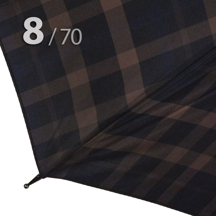 Зонт трость синего цвета в клетку, сформированную из полос серого, коричневого цветов от компании Три Слона понравится мужчинам, которые хотят добавить в свой образ что-то новое.