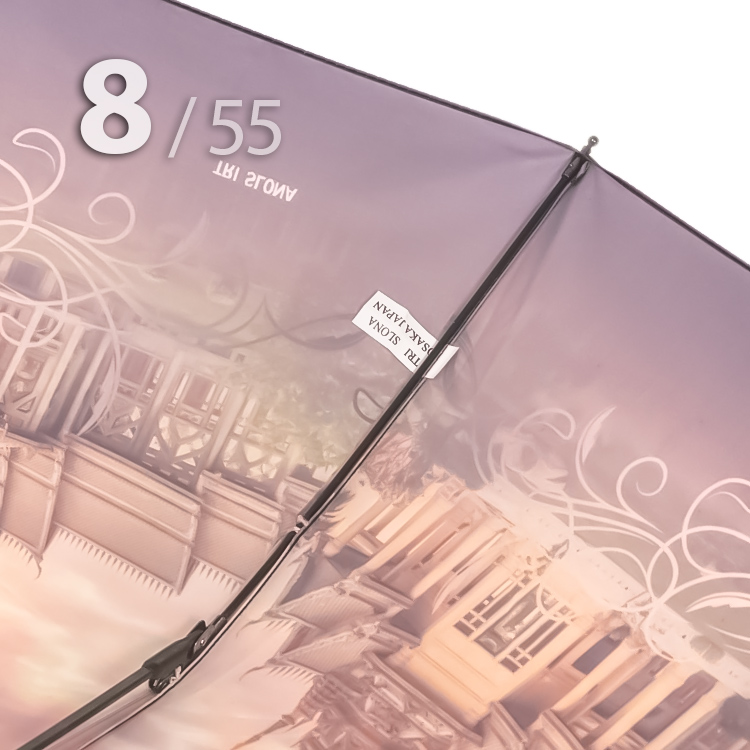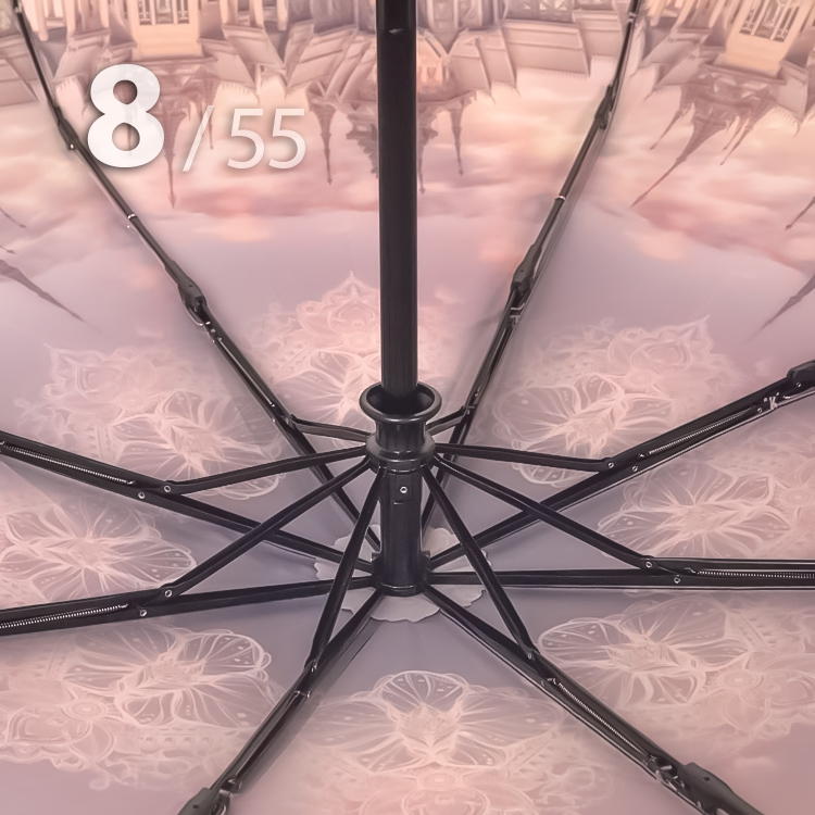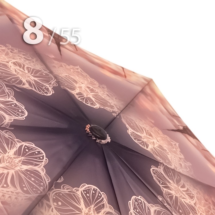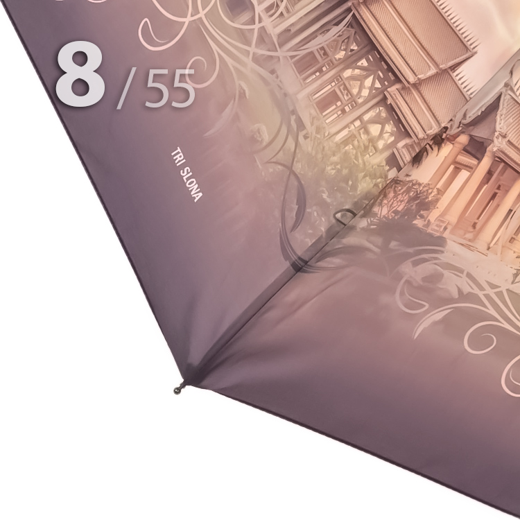 Облегченный складной зонт для женщин от компании Три СлонаЖенский зонт в 3-сложения с рисунком пагоды на сиреневом фоне представляет компания Три Слона. Преимуществом данной модели являются средний размер в сложенном виде и облегченный вес, что очень удобно для небольших сумок, рюкзаков, т.к. не займет много места.Полный Автомат - гарантирует легкое и комфортное управление, поскольку нажатием всего одной кнопки зонт можно открыть или закрыть. При полном сложении зонта, купол фиксирует специальный хлястик на липучке.Ткань купола - полиэстер с пропиткой, которая успешно противостоит воздействию воды, пыли и грязи. А специальное тефлоновое покрытие усиливает водоотталкивающие свойства материала и защищает зонт от вредного воздействия окружающей среды.Тип переплетения нитей «эпонж»- особая структура плетения, способная отталкивать воду. За счет неравномерного распределения нитей, образовываются узелки. Поверхность получается, как бы губчатой, на ней капли воды не задерживаются - стекают вниз и даже при сильном дожде зонтик не протечет и быстро высохнет после намокания.Ручка - выполнена из пластика. Дополнена ремешком-петелькой для фиксации зонта на запястье или для подвешивания.Каркас - на 8-ми спицах из высокопрочных материалов, обеспечивает долгий срок службы изделию.Чехол – стандартный идет в комплекте, для удобства переноски и хранения, в случае сильно мокрого зонта затруднит протекание и намокание сумки.Антиветер – защищает зонт от поломок. Пружинки в конструкции спиц не дают креплениям ломаться, позволяя им выворачиваться в обратную сторону и возвращаться на место. Но обращаем ваше внимание, что зонт не рекомендуется использовать при порывах ветра (особенно разнонаправленного), так как зонтик может сломаться. И случай не будет считаться гарантийным.ДЛЯ КОГОДля тех, кто ценит качество и комфорт. Незаменимая защита на случай затяжных осадков. Прекрасный подарок, который удивит и будет по достоинству оценен в процессе эксплуатации.УХОД И ХРАНЕНИЕПосле использования зонт необходимо просушить. После того как зонт высохнет, сложите купол, аккуратно расправляя складки ткани купола. Затем без усилий стянуть хлястиком и убрать сложенный зонт в чехол. Хранить в сухом месте с плюсовой температурой, не допускать складирования сверху зонта других предметов, способных повредить каркас и купол зонта.Возможные загрязнения отмывайте без усилий, теплым мыльным раствором (использование горячей воды, пятновыводителей и других агрессивных жидкостей не допускается).Только в нашем специализированном розничном магазине зонтов и в сравнении с другими аналогами, вы можете оценить качественное преимущество этого зонта, которое не видно по картинке.