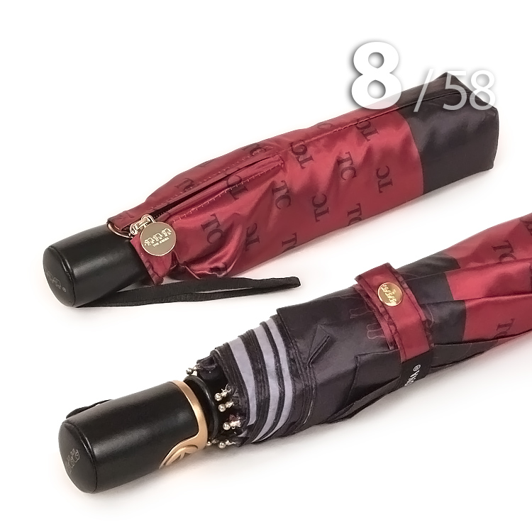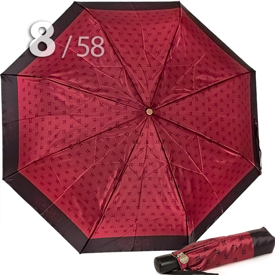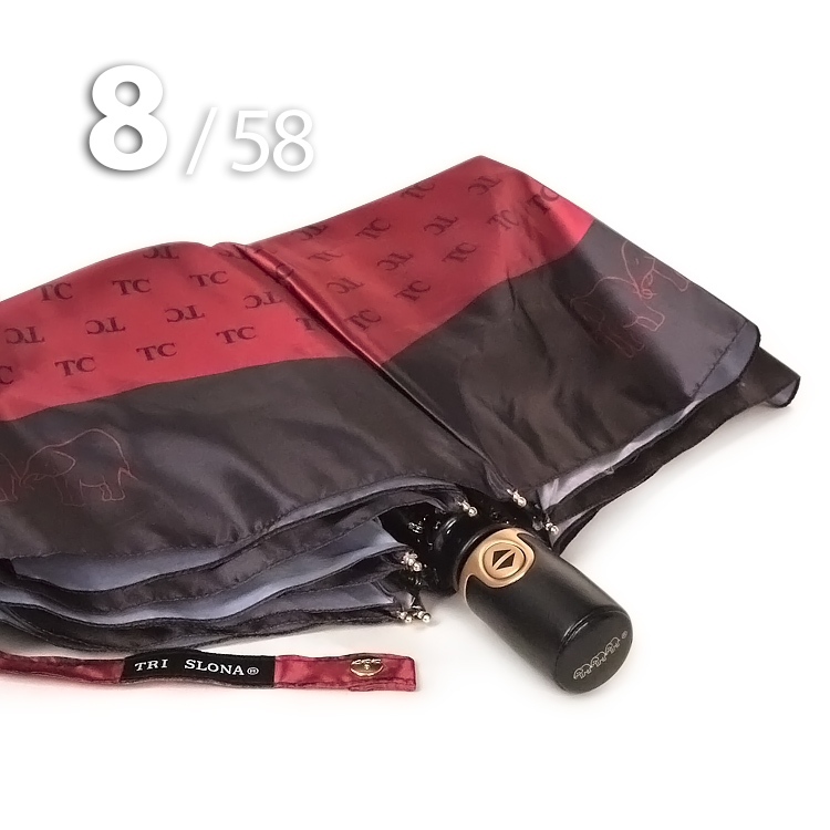 Изысканный вариант женского зонта в красном цвете, украшенный логотипами компании Три Слона, и с широким черным кантом по краю купола делает аксессуар более элегантным. Средний вес зонта, конструкция в 3-сложения и средние размеры в длину позволяют носить его с собой в рюкзаке или сумке. В диаметре купол увеличенного размера.