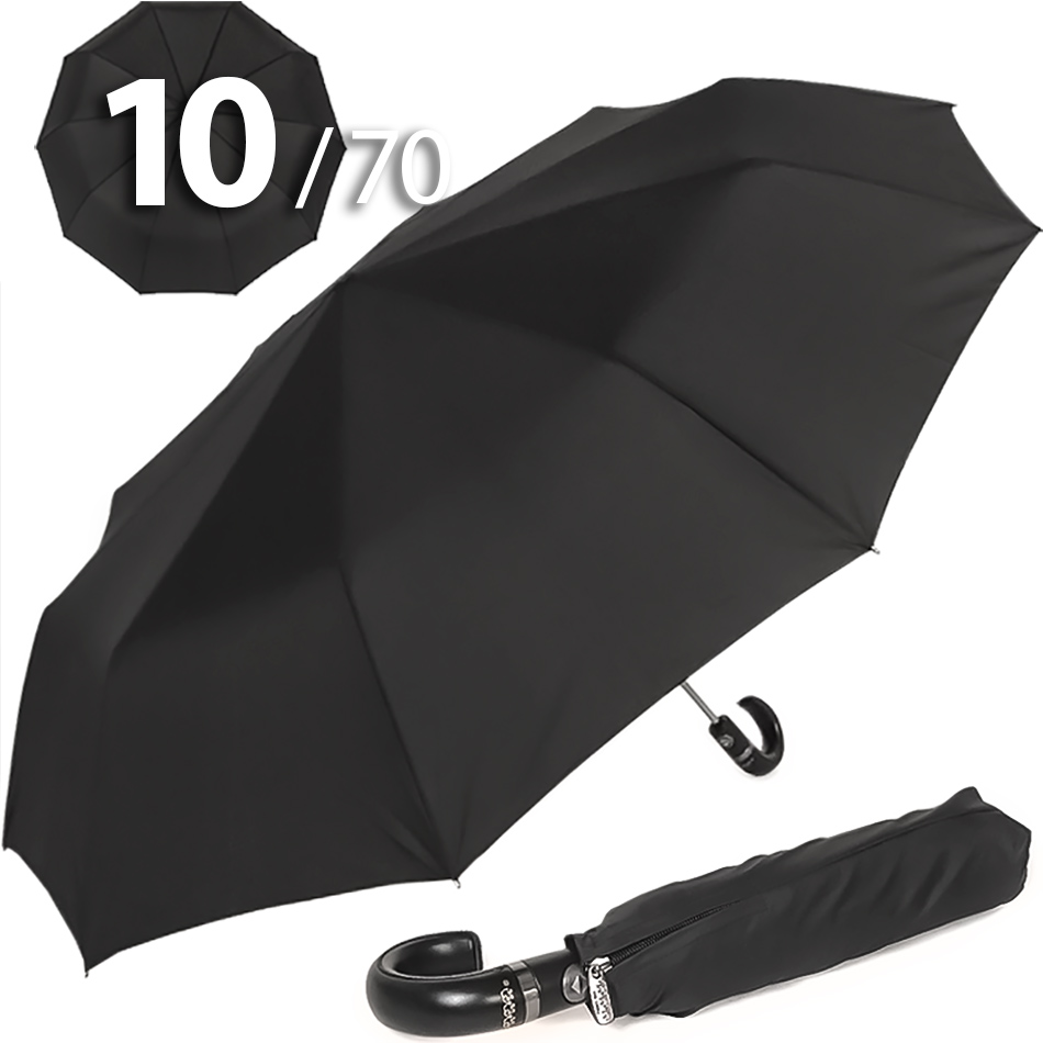 Полный Автомат - гарантирует легкое и комфортное управление, поскольку нажатием всего одной кнопки купол можно открыть или закрыть. При полном сложении зонта, купол фиксирует специальный хлястик на металлической кнопке.Ручка - крюк, одна из самых удобных, выполнена из экокожи, что добавляет аксессуару особого шарма.Ткань купола - полиэстер с пропиткой, которая успешно противостоит воздействию воды, пыли и грязи. А специальное тефлоновое покрытие усиливает водоотталкивающие свойства материала и защищает зонт от вредного воздействия окружающей среды.Тип переплетения нитей «эпонж»- особая структура плетения, способная отталкивать воду. За счет неравномерного распределения нитей, образовываются узелки. Поверхность получается, как бы губчатой, на ней капли воды не задерживаются - стекают вниз и даже при сильном дожде зонтик не протечет и быстро высохнет после намокания.Каркас зонта - усиленный на 10-ти спицах из высокопрочных материалов, обеспечивает долгий срок службы изделию.Чехол - на молнии идет в комплекте, для удобства переноски и хранения, в случае сильно мокрого зонта затруднит протекание и намокание сумки.Антиветер - защищает зонт от поломок. Пружинки в конструкции спиц не дают креплениям ломаться, позволяя им выворачиваться в обратную сторону и возвращаться на место. Но обращаем ваше внимание, что зонт не рекомендуется использовать при порывах ветра (особенно разнонаправленного), так как он может сломаться. И случай не будет являться гарантийнымДЛЯ КОГОНезаменимая защита на случай затяжных осадков. Прекрасный подарок, который удивит и будет по достоинству оценен в процессе эксплуатации.УХОД И ХРАНЕНИЕПосле использования зонт необходимо просушить. После того как зонт высохнет, сложите купол, аккуратно расправляя складки ткани купола. Затем без усилий стянуть хлястиком и убрать сложенный зонт в чехол. Хранить в сухом месте с плюсовой температурой, не допускать складирования сверху зонта других предметов, способных повредить каркас и купол зонта.Возможные загрязнения отмывайте без усилий, теплым мыльным раствором (использование горячей воды, пятновыводителей и других агрессивных жидкостей не допускается).Только в нашем специализированном розничном магазине зонтов и в сравнении с другими аналогами, вы можете оценить качественное преимущество этого зонта, которое не видно по картинке. Характеристики