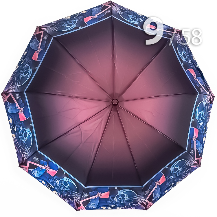 Элегантный женский зонтик в приятном розовом цвете с голубым кантом в виде оригинальной абстракции по краю от компании Три Слона. Средний вес зонта, конструкция в 3-сложения и средние размеры в длину позволяют носить его с собой в рюкзаке или сумке. В диаметре купол стандартного классического размера.