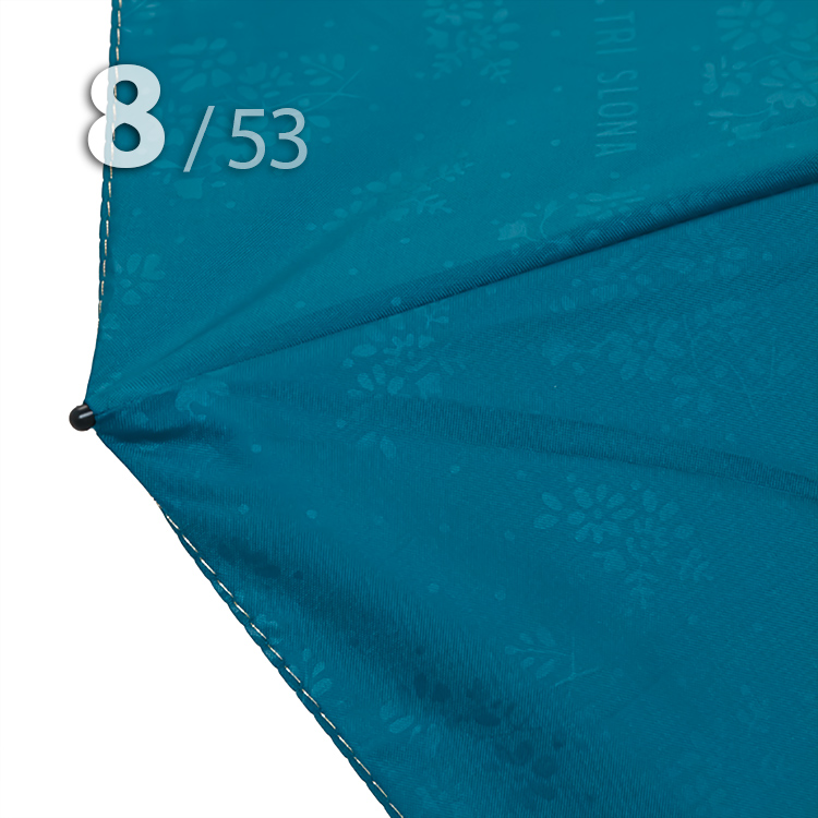 Компактный складной зонт для женщин от компании Три СлонаОблегченный вариант женского зонта в 4-сложения бирюзового цвета с набивным рисунком из многочисленных цветочных букетиков в тон купола представляет компания Три Слона. Золотая отстрочка по краю купола придаёт зонту больше шарма.Полный Автомат - гарантирует легкое и комфортное управление, поскольку нажатием всего одной кнопки зонт можно открыть или закрыть.Ткань купола - полиэстер со специальной водоотталкивающей пропиткой, которая успешно противостоит воздействию воды, пыли и грязи. Не требует особого ухода, быстро сохнет, не линяет.Ручка - из пластика с прорезиненным покрытием, которое обеспечивает хорошее сцепление с рукой, что уменьшает скольжение и создает удобство при длительном использовании ручки во время дождя или при влажных условиях. Прорезиненное покрытие повышает стойкость ручки к повреждениям и царапинам, увеличивая срок службы изделия. Дополнена ремешком-петелькой для фиксации зонта на запястье или для подвешивания.Вес: 330 г - облегченный вес достигается за счет использования очень легких материалов. При этом они отлично показывают себя в характеристиках прочности и надежности.Антиветер - защищает зонт от поломок. Пружинки в конструкции спиц не дают креплениям ломаться, позволяя им выворачиваться в обратную сторону и возвращаться на место. Но обращаем ваше внимание, что зонт не рекомендуется использовать при порывах ветра (особенно разнонаправленного), так как зонтик может сломаться. И случай не будет являться гарантийным.ДЛЯ КОГОМодель для мобильных, деловых и активных - повседневное использование. Оптимальный размер купола позволяет использовать зонт даже в плотном городском потоке.Учитывая компактность и малый вес, его можно брать с собой в поездку или использовать в качестве варианта "на всякий случай", когда вероятность осадков сомнительна.УХОД И ХРАНЕНИЕПосле использования зонт необходимо просушить. После того как зонт высохнет, сложите купол, аккуратно расправляя складки ткани купола. Затем без усилий стянуть хлястиком и убрать сложенный зонт в чехол. Хранить в сухом месте с плюсовой температурой, не допускать складирования сверху зонта других предметов, способных повредить каркас и купол зонта.Возможные загрязнения отмывайте без усилий, теплым мыльным раствором (использование горячей воды, пятновыводителей и других агрессивных жидкостей не допускается).Только в нашем специализированном розничном магазине зонтов и в сравнении с другими аналогами, вы можете оценить качественное преимущество этого зонта, которое не видно по картинке.