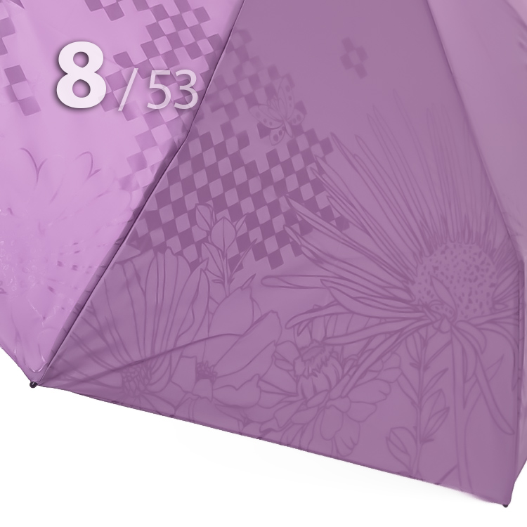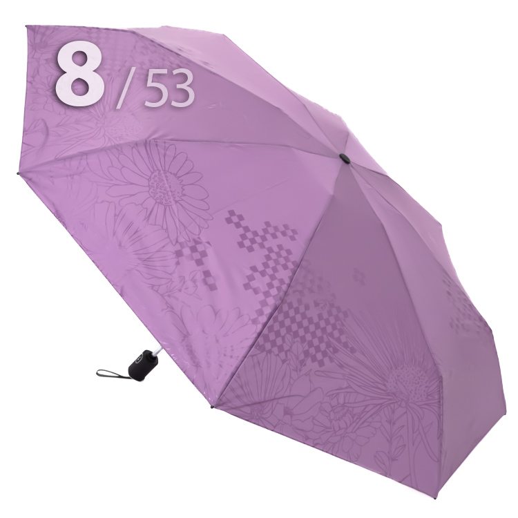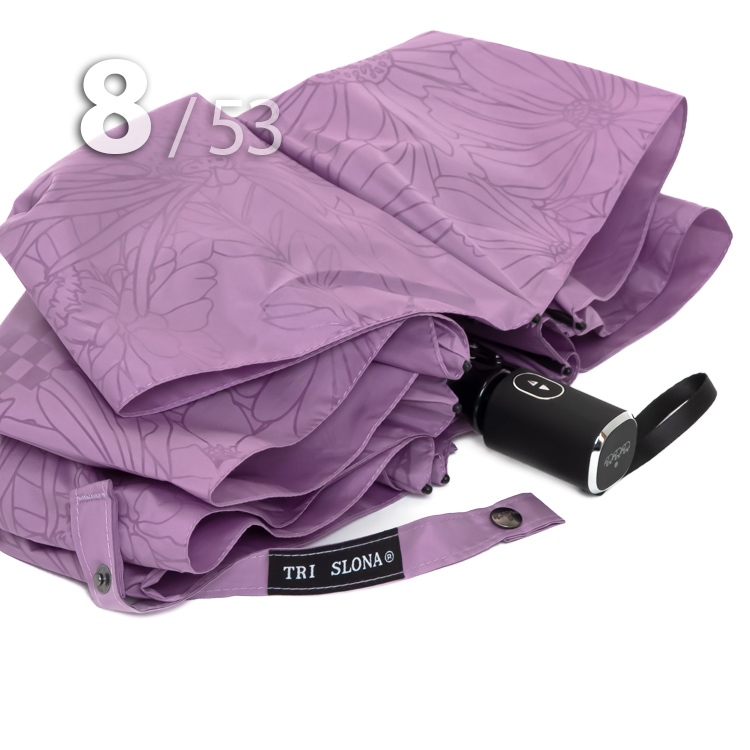 Компактный складной зонт для женщин от компании Три СлонаОблегченный вариант женского зонта в 4-сложения сиреневого цвета с графическим рисунком цветов и бабочек в тон купола представляет компания Три Слона.Полный Автомат - гарантирует легкое и комфортное управление, поскольку нажатием всего одной кнопки зонт можно открыть или закрыть.Ткань купола - полиэстер со специальной водоотталкивающей пропиткой, которая успешно противостоит воздействию воды, пыли и грязи. Не требует особого ухода, быстро сохнет, не линяет.Ручка - из пластика с прорезиненным покрытием, которое обеспечивает хорошее сцепление с рукой, что уменьшает скольжение и создает удобство при длительном использовании ручки во время дождя или при влажных условиях. Прорезиненное покрытие повышает стойкость ручки к повреждениям и царапинам, увеличивая срок службы изделия. Дополнена ремешком-петелькой для фиксации зонта на запястье или для подвешивания.Вес: 330 г - облегченный вес достигается за счет использования очень легких материалов. При этом они отлично показывают себя в характеристиках прочности и надежности.Антиветер - защищает зонт от поломок. Пружинки в конструкции спиц не дают креплениям ломаться, позволяя им выворачиваться в обратную сторону и возвращаться на место. Но обращаем ваше внимание, что зонт не рекомендуется использовать при сильных порывах ветра, так как он может сломаться.ДЛЯ КОГОМодель для мобильных, деловых и активных - повседневное использование. Оптимальный размер купола позволяет использовать зонт даже в плотном городском потоке.Учитывая компактность и малый вес, его можно брать с собой в поездку или использовать в качестве варианта "на всякий случай", когда вероятность осадков сомнительна.УХОД И ХРАНЕНИЕПосле использования зонт необходимо просушить. После того как зонт высохнет, сложите купол, аккуратно расправляя складки ткани купола. Затем без усилий стянуть хлястиком и убрать сложенный зонт в чехол. Хранить в сухом месте с плюсовой температурой, не допускать складирования сверху зонта других предметов, способных повредить каркас и купол зонта.Возможные загрязнения отмывайте без усилий, теплым мыльным раствором (использование горячей воды, пятновыводителей и других агрессивных жидкостей не допускается).Только в нашем специализированном розничном магазине зонтов и в сравнении с другими аналогами, вы можете оценить качественное преимущество этого зонта, которое не видно по картинке.