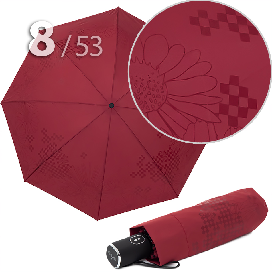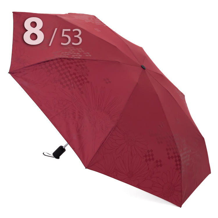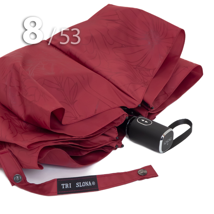 Компактный складной зонт для женщин от компании Три СлонаОблегченный вариант женского зонта в 4-сложения красного цвета с графическим рисунком цветов и бабочек в тон купола представляет компания Три Слона.Полный Автомат - гарантирует легкое и комфортное управление, поскольку нажатием всего одной кнопки зонт можно открыть или закрыть.Ткань купола - полиэстер со специальной водоотталкивающей пропиткой, которая успешно противостоит воздействию воды, пыли и грязи. Не требует особого ухода, быстро сохнет, не линяет.Ручка - из пластика с прорезиненным покрытием, которое обеспечивает хорошее сцепление с рукой, что уменьшает скольжение и создает удобство при длительном использовании ручки во время дождя или при влажных условиях. Прорезиненное покрытие повышает стойкость ручки к повреждениям и царапинам, увеличивая срок службы изделия. Дополнена ремешком-петелькой для фиксации зонта на запястье или для подвешивания.Вес: 330 г - облегченный вес достигается за счет использования очень легких материалов. При этом они отлично показывают себя в характеристиках прочности и надежности.Антиветер - защищает зонт от поломок. Пружинки в конструкции спиц не дают креплениям ломаться, позволяя им выворачиваться в обратную сторону и возвращаться на место. Но обращаем ваше внимание, что зонт не рекомендуется использовать при сильных порывах ветра, так как он может сломаться.ДЛЯ КОГОМодель для мобильных, деловых и активных - повседневное использование. Оптимальный размер купола позволяет использовать зонт даже в плотном городском потоке.Учитывая компактность и малый вес, его можно брать с собой в поездку или использовать в качестве варианта "на всякий случай", когда вероятность осадков сомнительна.УХОД И ХРАНЕНИЕПосле использования зонт необходимо просушить. После того как зонт высохнет, сложите купол, аккуратно расправляя складки ткани купола. Затем без усилий стянуть хлястиком и убрать сложенный зонт в чехол. Хранить в сухом месте с плюсовой температурой, не допускать складирования сверху зонта других предметов, способных повредить каркас и купол зонта.Возможные загрязнения отмывайте без усилий, теплым мыльным раствором (использование горячей воды, пятновыводителей и других агрессивных жидкостей не допускается).Только в нашем специализированном розничном магазине зонтов и в сравнении с другими аналогами, вы можете оценить качественное преимущество этого зонта, которое не видно по картинке.