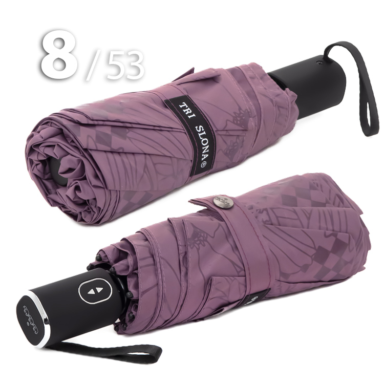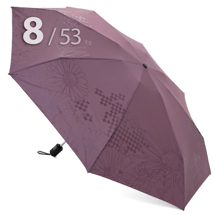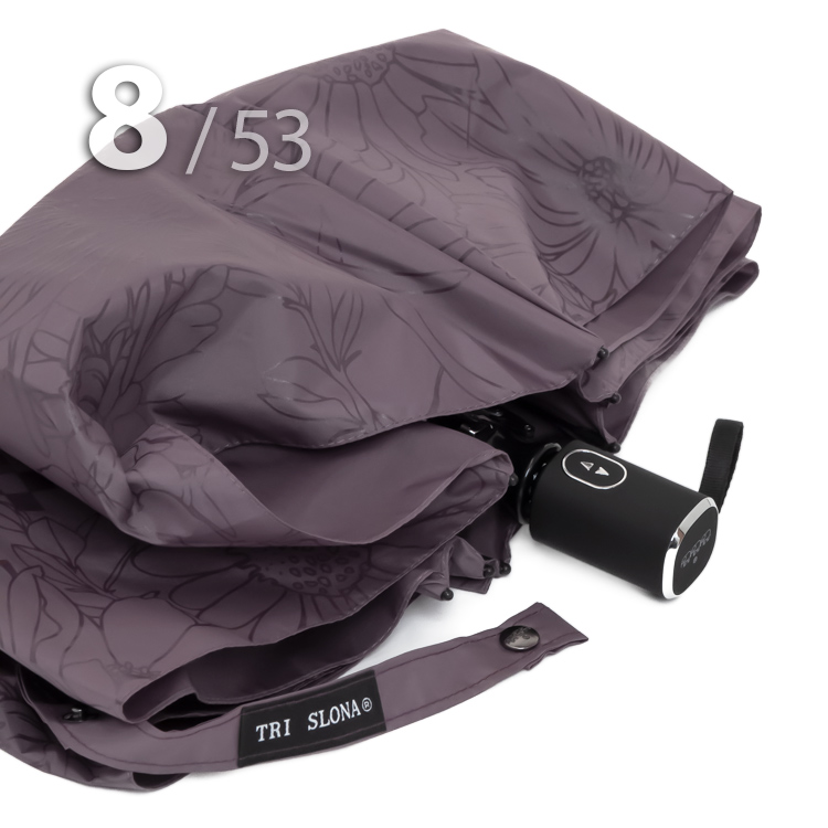 Компактный складной зонт для женщин от компании Три СлонаОблегченный вариант женского зонта в 4-сложения темно-сиреневого цвета с графическим рисунком цветов и бабочек в тон купола представляет компания Три Слона.Полный Автомат - гарантирует легкое и комфортное управление, поскольку нажатием всего одной кнопки зонт можно открыть или закрыть.Ткань купола - полиэстер со специальной водоотталкивающей пропиткой, которая успешно противостоит воздействию воды, пыли и грязи. Не требует особого ухода, быстро сохнет, не линяет.Ручка - из пластика с прорезиненным покрытием, которое обеспечивает хорошее сцепление с рукой, что уменьшает скольжение и создает удобство при длительном использовании ручки во время дождя или при влажных условиях. Прорезиненное покрытие повышает стойкость ручки к повреждениям и царапинам, увеличивая срок службы изделия. Дополнена ремешком-петелькой для фиксации зонта на запястье или для подвешивания.Вес: 330 г - облегченный вес достигается за счет использования очень легких материалов. При этом они отлично показывают себя в характеристиках прочности и надежности.Антиветер - защищает зонт от поломок. Пружинки в конструкции спиц не дают креплениям ломаться, позволяя им выворачиваться в обратную сторону и возвращаться на место. Но обращаем ваше внимание, что зонт не рекомендуется использовать при сильных порывах ветра, так как он может сломаться.ДЛЯ КОГОМодель для мобильных, деловых и активных - повседневное использование. Оптимальный размер купола позволяет использовать зонт даже в плотном городском потоке.Учитывая компактность и малый вес, его можно брать с собой в поездку или использовать в качестве варианта "на всякий случай", когда вероятность осадков сомнительна.УХОД И ХРАНЕНИЕПосле использования зонт необходимо просушить. После того как зонт высохнет, сложите купол, аккуратно расправляя складки ткани купола. Затем без усилий стянуть хлястиком и убрать сложенный зонт в чехол. Хранить в сухом месте с плюсовой температурой, не допускать складирования сверху зонта других предметов, способных повредить каркас и купол зонта.Возможные загрязнения отмывайте без усилий, теплым мыльным раствором (использование горячей воды, пятновыводителей и других агрессивных жидкостей не допускается).Только в нашем специализированном розничном магазине зонтов и в сравнении с другими аналогами, вы можете оценить качественное преимущество этого зонта, которое не видно по картинке.