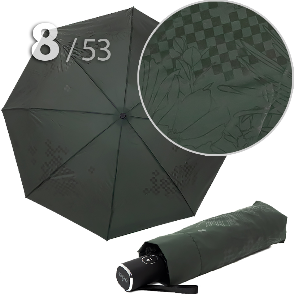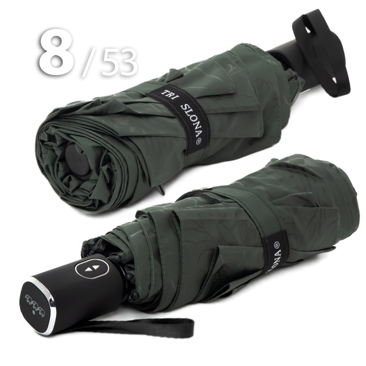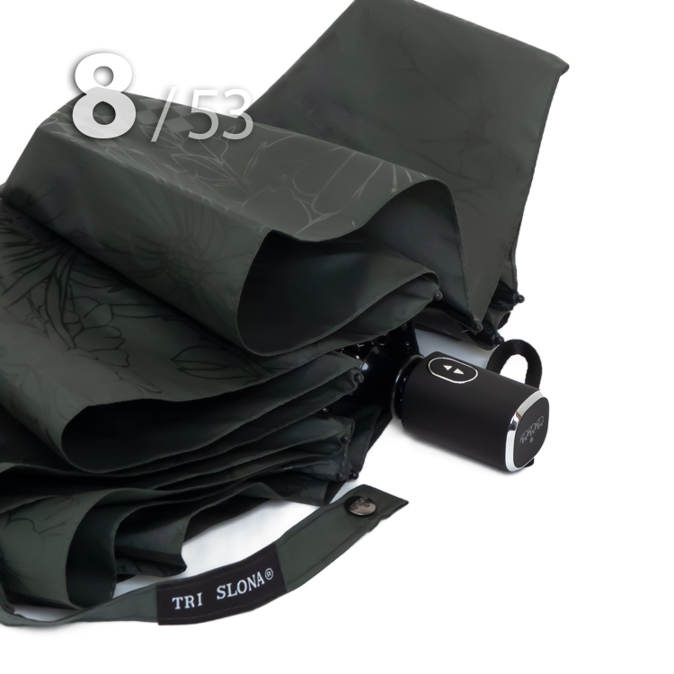 Компактный складной зонт для женщин от компании Три СлонаОблегченный вариант женского зонта в 4-сложения темно-зеленого цвета с графическим рисунком цветов и бабочек в тон купола представляет компания Три Слона.Полный Автомат - гарантирует легкое и комфортное управление, поскольку нажатием всего одной кнопки зонт можно открыть или закрыть.Ткань купола - полиэстер со специальной водоотталкивающей пропиткой, которая успешно противостоит воздействию воды, пыли и грязи. Не требует особого ухода, быстро сохнет, не линяет.Ручка - из пластика с прорезиненным покрытием, которое обеспечивает хорошее сцепление с рукой, что уменьшает скольжение и создает удобство при длительном использовании ручки во время дождя или при влажных условиях. Прорезиненное покрытие повышает стойкость ручки к повреждениям и царапинам, увеличивая срок службы изделия. Дополнена ремешком-петелькой для фиксации зонта на запястье или для подвешивания.Вес: 330 г - облегченный вес достигается за счет использования очень легких материалов. При этом они отлично показывают себя в характеристиках прочности и надежности.Антиветер - защищает зонт от поломок. Пружинки в конструкции спиц не дают креплениям ломаться, позволяя им выворачиваться в обратную сторону и возвращаться на место. Но обращаем ваше внимание, что зонт не рекомендуется использовать при сильных порывах ветра, так как он может сломаться.ДЛЯ КОГОМодель для мобильных, деловых и активных - повседневное использование. Оптимальный размер купола позволяет использовать зонт даже в плотном городском потоке.Учитывая компактность и малый вес, его можно брать с собой в поездку или использовать в качестве варианта "на всякий случай", когда вероятность осадков сомнительна.УХОД И ХРАНЕНИЕПосле использования зонт необходимо просушить. После того как зонт высохнет, сложите купол, аккуратно расправляя складки ткани купола. Затем без усилий стянуть хлястиком и убрать сложенный зонт в чехол. Хранить в сухом месте с плюсовой температурой, не допускать складирования сверху зонта других предметов, способных повредить каркас и купол зонта.Возможные загрязнения отмывайте без усилий, теплым мыльным раствором (использование горячей воды, пятновыводителей и других агрессивных жидкостей не допускается).Только в нашем специализированном розничном магазине зонтов и в сравнении с другими аналогами, вы можете оценить качественное преимущество этого зонта, которое не видно по картинке.