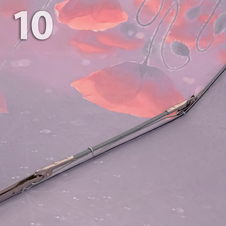 Полный Автомат - гарантирует легкое и комфортное управление, поскольку нажатием всего одной кнопки зонт можно открыть или закрыть.Ткань купола - полиэстер, обработанный водоотталкивающей пропиткой, которая успешно противостоит воздействию воды, пыли и грязи. Тип переплетения нитей «эпонж»- особая структура плетения, способная отталкивать воду. За счет неравномерного распределения нитей, образовываются узелки. Поверхность получается, как бы губчатой, на ней не задерживается влага - стекает вниз.Ручка - большая и удобная выполнена из пластика с прорезиненным покрытием Soft-touch, которое обеспечивает хорошее сцепление с рукой, что уменьшает скольжение ладони и создает удобство при длительном использовании зонта во время дождя. Прорезиненное покрытие повышает стойкость ручки к повреждениям и царапинам. Дополнена ремешком-петелькой для фиксации зонта на запястье или для подвешивания.Каркас - усиленный на 10-ти спицах из высокопрочных материалов, обеспечивает долгий срок службы изделию.Чехол – на молнии идет в комплекте, для удобства переноски и хранения, в случае сильно мокрого зонта затруднит протекание и намокание сумки.Антиветер – защищает зонт от поломок. Пружинки в конструкции спиц не дают креплениям ломаться, позволяя им выворачиваться в обратную сторону и возвращаться на место. Но обращаем ваше внимание, что зонт не рекомендуется использовать при сильных порывах ветра, так как он может сломаться.ДЛЯ КОГОДля тех, кто ценит качество и комфорт. Незаменимая защита на случай затяжных осадков. Прекрасный подарок, который удивит и будет по достоинству оценен в процессе эксплуатации.УХОД И ХРАНЕНИЕПосле использования зонт необходимо просушить. После того как зонт высохнет, сложите купол, аккуратно расправляя складки ткани купола. Затем без усилий стянуть хлястиком и убрать сложенный зонт в чехол. Хранить в сухом месте с плюсовой температурой, не допускать складирования сверху зонта других предметов, способных повредить каркас и купол зонта.Возможные загрязнения отмывайте без усилий, теплым мыльным раствором (использование горячей воды, пятновыводителей и других агрессивных жидкостей не допускается).Только в нашем специализированном розничном магазине зонтов и в сравнении с другими аналогами, вы можете оценить качественное преимущество этого зонта, которое не видно по картинке. Характеристики