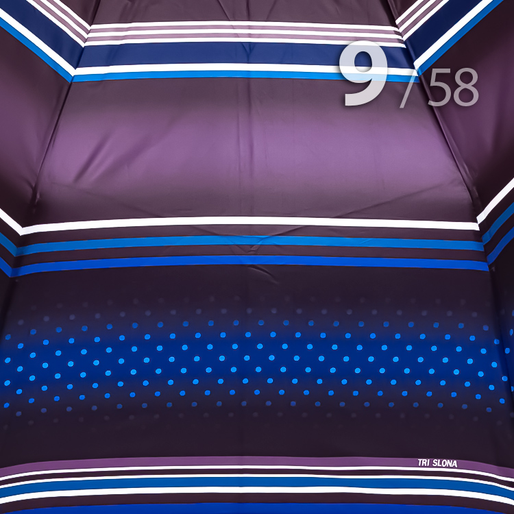 Надежный складной зонт для женщин от компании Три СлонаЖенский зонт в 3-сложения от компании Три Слона в черно-синем цвете с рисунком горошка и полоски. Такое сочетание выглядит ярко, смело и одновременно женственно и добавит Вашему образу романтичности.Полный Автомат - гарантирует легкое и комфортное управление, поскольку нажатием всего одной кнопки зонт можно открыть или закрыть.Ткань купола - полиэстер, обработанный водоотталкивающей пропиткой, которая успешно противостоит воздействию воды, пыли и грязи. Тип переплетения нитей «эпонж»- особая структура плетения, способная отталкивать воду. За счет неравномерного распределения нитей, образовываются узелки. Поверхность получается, как бы губчатой, на ней не задерживается влага - стекает вниз.Ручка - большая и удобная выполнена из пластика с прорезиненным покрытием Soft-touch, которое обеспечивает хорошее сцепление с рукой, что уменьшает скольжение ладони и создает удобство при длительном использовании зонта во время дождя. Прорезиненное покрытие повышает стойкость ручки к повреждениям и царапинам. Дополнена ремешком-петелькой для фиксации зонта на запястье или для подвешивания.Каркас - усиленный на 9-ти спицах из высокопрочных материалов, обеспечивает долгий срок службы изделию.Чехол – на молнии идет в комплекте, для удобства переноски и хранения, в случае сильно мокрого зонта затруднит протекание и намокание сумки.Антиветер – защищает зонт от поломок. Пружинки в конструкции спиц не дают креплениям ломаться, позволяя им выворачиваться в обратную сторону и возвращаться на место. Но обращаем ваше внимание, что зонт не рекомендуется использовать при порывах ветра (особенно разнонаправленного), так как зонтик может сломаться. И случай не будет являться гарантийным.ДЛЯ КОГОДля тех, кто ценит качество и комфорт. Незаменимая защита на случай затяжных осадков. Прекрасный подарок, который удивит и будет по достоинству оценен в процессе эксплуатации.УХОД И ХРАНЕНИЕПосле использования зонт необходимо просушить. После того как зонт высохнет, сложите купол, аккуратно расправляя складки ткани купола. Затем без усилий стянуть хлястиком и убрать сложенный зонт в чехол. Хранить в сухом месте с плюсовой температурой, не допускать складирования сверху зонта других предметов, способных повредить каркас и купол зонта.Возможные загрязнения отмывайте без усилий, теплым мыльным раствором (использование горячей воды, пятновыводителей и других агрессивных жидкостей не допускается).Только в нашем специализированном розничном магазине зонтов и в сравнении с другими аналогами, вы можете оценить качественное преимущество этого зонта, которое не видно по картинке.