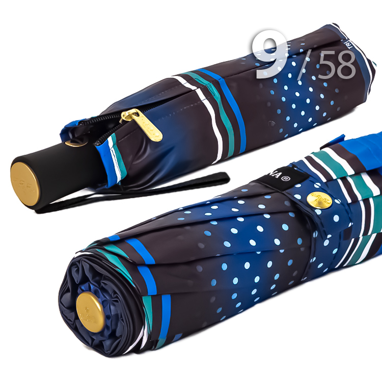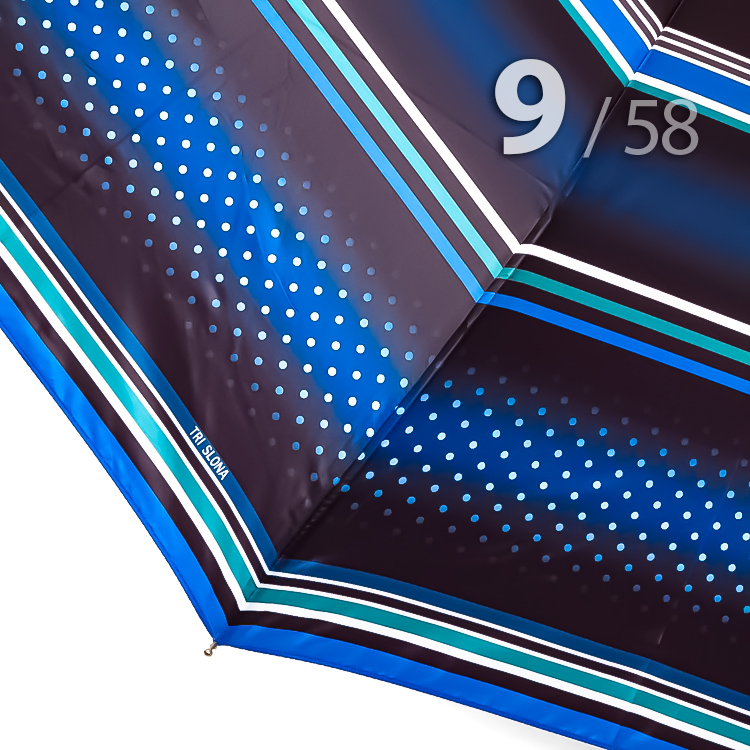 Надежный складной зонт для женщин от компании Три СлонаЖенский зонт в 3-сложения от компании Три Слона в черно-голубом цвете с рисунком горошка и полоски. Такое сочетание выглядит ярко, смело и одновременно женственно и добавит Вашему образу романтичности.Полный Автомат - гарантирует легкое и комфортное управление, поскольку нажатием всего одной кнопки зонт можно открыть или закрыть.Ткань купола - полиэстер, обработанный водоотталкивающей пропиткой, которая успешно противостоит воздействию воды, пыли и грязи. Тип переплетения нитей «эпонж»- особая структура плетения, способная отталкивать воду. За счет неравномерного распределения нитей, образовываются узелки. Поверхность получается, как бы губчатой, на ней не задерживается влага - стекает вниз.Ручка - большая и удобная выполнена из пластика с прорезиненным покрытием Soft-touch, которое обеспечивает хорошее сцепление с рукой, что уменьшает скольжение ладони и создает удобство при длительном использовании зонта во время дождя. Прорезиненное покрытие повышает стойкость ручки к повреждениям и царапинам. Дополнена ремешком-петелькой для фиксации зонта на запястье или для подвешивания.Каркас - усиленный на 9-ти спицах из высокопрочных материалов, обеспечивает долгий срок службы изделию.Чехол – на молнии идет в комплекте, для удобства переноски и хранения, в случае сильно мокрого зонта затруднит протекание и намокание сумки.Антиветер – защищает зонт от поломок. Пружинки в конструкции спиц не дают креплениям ломаться, позволяя им выворачиваться в обратную сторону и возвращаться на место. Но обращаем ваше внимание, что зонт не рекомендуется использовать при сильных порывах ветра, так как он может сломаться.ДЛЯ КОГОДля тех, кто ценит качество и комфорт. Незаменимая защита на случай затяжных осадков. Прекрасный подарок, который удивит и будет по достоинству оценен в процессе эксплуатации.УХОД И ХРАНЕНИЕПосле использования зонт необходимо просушить. После того как зонт высохнет, сложите купол, аккуратно расправляя складки ткани купола. Затем без усилий стянуть хлястиком и убрать сложенный зонт в чехол. Хранить в сухом месте с плюсовой температурой, не допускать складирования сверху зонта других предметов, способных повредить каркас и купол зонта.Возможные загрязнения отмывайте без усилий, теплым мыльным раствором (использование горячей воды, пятновыводителей и других агрессивных жидкостей не допускается).Только в нашем специализированном розничном магазине зонтов и в сравнении с другими аналогами, вы можете оценить качественное преимущество этого зонта, которое не видно по картинке.