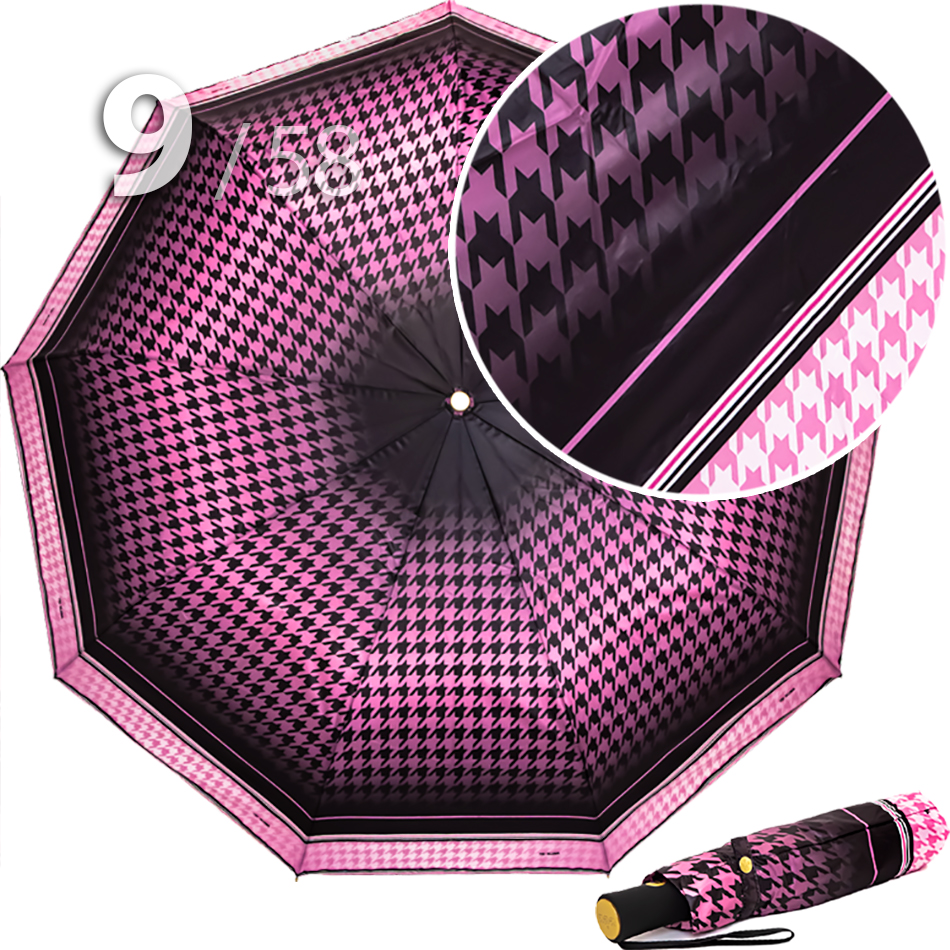 Надежный складной зонт для женщин от компании Три СлонаЖенский зонт в 3-сложения от компании Три Слона розового цвета с популярным геометрическим узором «Гусиная лапка»Полный Автомат - гарантирует легкое и комфортное управление, поскольку нажатием всего одной кнопки зонт можно открыть или закрыть.Ткань купола - полиэстер, обработанный водоотталкивающей пропиткой, которая успешно противостоит воздействию воды, пыли и грязи. Тип переплетения нитей «эпонж»- особая структура плетения, способная отталкивать воду. За счет неравномерного распределения нитей, образовываются узелки. Поверхность получается, как бы губчатой, на ней не задерживается влага - стекает вниз.Ручка - большая и удобная выполнена из пластика с прорезиненным покрытием Soft-touch, которое обеспечивает хорошее сцепление с рукой, что уменьшает скольжение ладони и создает удобство при длительном использовании зонта во время дождя. Прорезиненное покрытие повышает стойкость ручки к повреждениям и царапинам. Дополнена ремешком-петелькой для фиксации зонта на запястье или для подвешивания.Каркас - усиленный на 9-ти спицах из высокопрочных материалов, обеспечивает долгий срок службы изделию.Чехол – на кнопке идет в комплекте, для удобства переноски и хранения, в случае сильно мокрого зонта затруднит протекание и намокание сумки.Антиветер – защищает зонт от поломок. Пружинки в конструкции спиц не дают креплениям ломаться, позволяя им выворачиваться в обратную сторону и возвращаться на место. Но обращаем ваше внимание, что зонт не рекомендуется использовать при порывах ветра (особенно разнонаправленного), так как зонтик может сломаться. И случай не будет считаться гарантийным.ДЛЯ КОГОДля тех, кто ценит качество и комфорт. Незаменимая защита на случай затяжных осадков. Прекрасный подарок, который удивит и будет по достоинству оценен в процессе эксплуатации.УХОД И ХРАНЕНИЕПосле использования зонт необходимо просушить. После того как зонт высохнет, сложите купол, аккуратно расправляя складки ткани купола. Затем без усилий стянуть хлястиком и убрать сложенный зонт в чехол. Хранить в сухом месте с плюсовой температурой, не допускать складирования сверху зонта других предметов, способных повредить каркас и купол зонта.Возможные загрязнения отмывайте без усилий, теплым мыльным раствором (использование горячей воды, пятновыводителей и других агрессивных жидкостей не допускается).Только в нашем специализированном розничном магазине зонтов и в сравнении с другими аналогами, вы можете оценить качественное преимущество этого зонта, которое не видно по картинке.