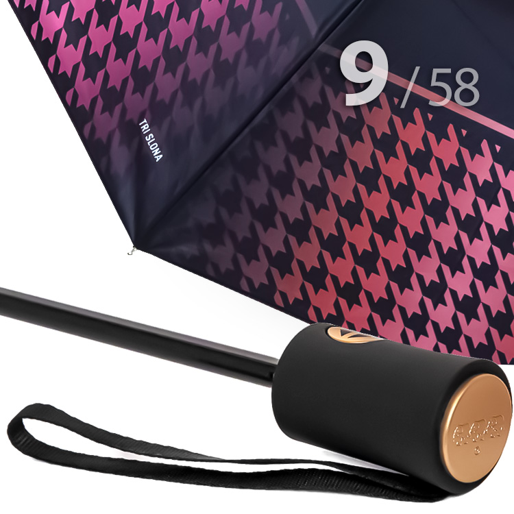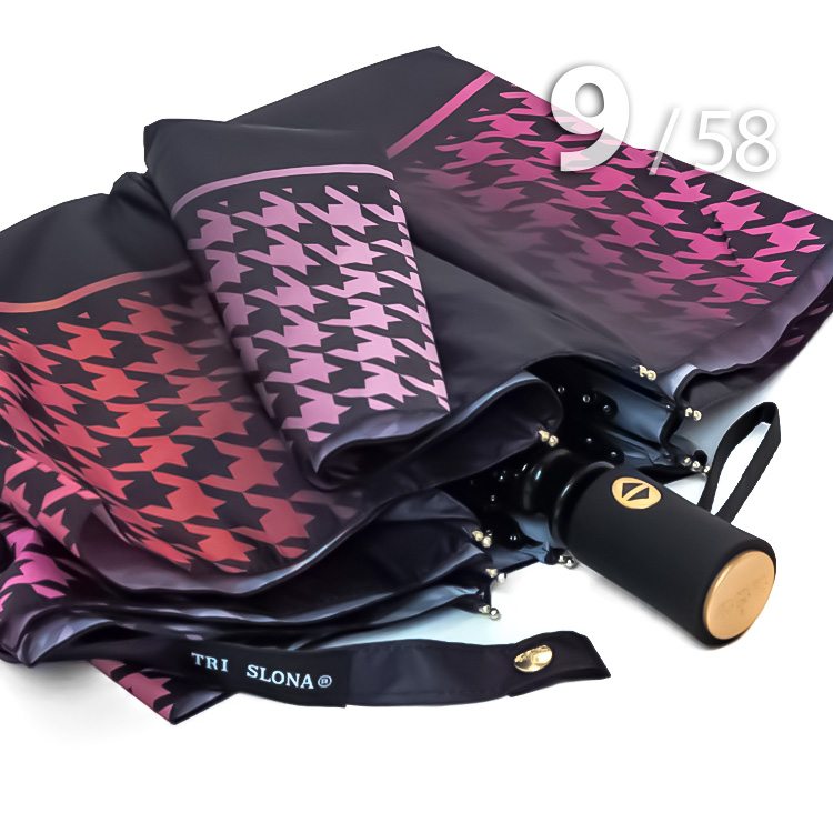Складной надежный зонт для женщин с ветроустойчивым каркасом 9 спицЖенский зонт в 3-сложения в черном цвете, декорированный по краю купола популярным геометрическим узором «Гусиная лапка» в розово-оранжевых оттенках, представляет компания Три Слона.Полный Автомат - гарантирует легкое и комфортное управление, поскольку нажатием всего одной кнопки зонт можно открыть или закрыть.Ткань купола - полиэстер. Тип переплетения нитей «эпонж»- особая структура плетения, способная отталкивать воду. За счет неравномерного распределения нитей, образовываются узелки. Поверхность получается, как бы губчатой, на ней не задерживается влага - стекает вниз.Ручка - удобная выполнена из пластика с прорезиненным покрытием Soft-touch, которое обеспечивает хорошее сцепление с рукой, что уменьшает скольжение ладони и создает удобство при длительном использовании зонта во время дождя. Прорезиненное покрытие повышает стойкость ручки к повреждениям и царапинам. Дополнена ремешком-петелькой для фиксации зонта на запястье или для подвешивания.Каркас - усиленный на 9-ти спицах из высокопрочных материалов, обеспечивает долгий срок службы изделию.Вес: оптимальный для зонта с усиленным каркасом.Чехол – на молнии идет в комплекте, для удобства переноски и хранения, в случае сильно мокрого зонта затруднит протекание и намокание сумки.Антиветер – защищает зонт от поломок. Пружинки в конструкции спиц не дают креплениям ломаться, позволяя им выворачиваться в обратную сторону и возвращаться на место. Но обращаем ваше внимание, что зонт не рекомендуется использовать при порывах ветра (особенно разнонаправленного), так как зонтик может сломаться. И случай не будет являться гарантийным.ДЛЯ КОГОДля тех, кто ценит качество и комфорт. Незаменимая защита на случай затяжных осадков. Прекрасный подарок, который удивит и будет по достоинству оценен в процессе эксплуатации.УХОД И ХРАНЕНИЕПосле использования зонт необходимо просушить. После того как зонт высохнет, сложите купол, аккуратно расправляя складки ткани купола. Затем без усилий стянуть хлястиком и убрать сложенный зонт в чехол. Хранить в сухом месте с плюсовой температурой, не допускать складирования сверху зонта других предметов, способных повредить каркас и купол зонта.Возможные загрязнения отмывайте без усилий, теплым мыльным раствором (использование горячей воды, пятновыводителей и других агрессивных жидкостей не допускается).Только в нашем специализированном розничном магазине зонтов и в сравнении с другими аналогами, вы можете оценить качественное преимущество этого зонта, которое не видно по картинке.