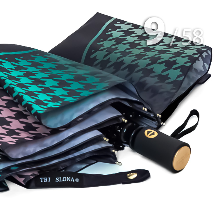 Складной надежный зонт для женщин с ветроустойчивым каркасом 9 спицЖенский зонт в 3-сложения в черном цвете, декорированный по краю купола популярным геометрическим узором «Гусиная лапка» в зелено-пудровых оттенках, представляет компания Три Слона.Полный Автомат - гарантирует легкое и комфортное управление, поскольку нажатием всего одной кнопки зонт можно открыть или закрыть.Ткань купола - полиэстер. Тип переплетения нитей «эпонж»- особая структура плетения, способная отталкивать воду. За счет неравномерного распределения нитей, образовываются узелки. Поверхность получается, как бы губчатой, на ней не задерживается влага - стекает вниз.Ручка - удобная выполнена из пластика с прорезиненным покрытием Soft-touch, которое обеспечивает хорошее сцепление с рукой, что уменьшает скольжение ладони и создает удобство при длительном использовании зонта во время дождя. Прорезиненное покрытие повышает стойкость ручки к повреждениям и царапинам. Дополнена ремешком-петелькой для фиксации зонта на запястье или для подвешивания.Каркас - усиленный на 9-ти спицах из высокопрочных материалов, обеспечивает долгий срок службы изделию.Вес: оптимальный для зонта с усиленным каркасом.Чехол – на молнии идет в комплекте, для удобства переноски и хранения, в случае сильно мокрого зонта затруднит протекание и намокание сумки.Антиветер – защищает зонт от поломок. Пружинки в конструкции спиц не дают креплениям ломаться, позволяя им выворачиваться в обратную сторону и возвращаться на место. Но обращаем ваше внимание, что зонт не рекомендуется использовать при порывах ветра (особенно разнонаправленного), так как зонтик может сломаться. И случай не будет являться гарантийным.ДЛЯ КОГОДля тех, кто ценит качество и комфорт. Незаменимая защита на случай затяжных осадков. Прекрасный подарок, который удивит и будет по достоинству оценен в процессе эксплуатации.УХОД И ХРАНЕНИЕПосле использования зонт необходимо просушить. После того как зонт высохнет, сложите купол, аккуратно расправляя складки ткани купола. Затем без усилий стянуть хлястиком и убрать сложенный зонт в чехол. Хранить в сухом месте с плюсовой температурой, не допускать складирования сверху зонта других предметов, способных повредить каркас и купол зонта.Возможные загрязнения отмывайте без усилий, теплым мыльным раствором (использование горячей воды, пятновыводителей и других агрессивных жидкостей не допускается).Только в нашем специализированном розничном магазине зонтов и в сравнении с другими аналогами, вы можете оценить качественное преимущество этого зонта, которое не видно по картинке.