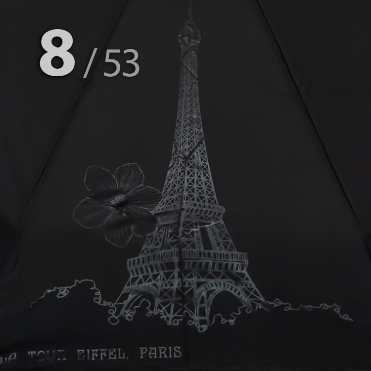 Компактный складной зонт для женщин от компании Три СлонаОблегченный вариант женского зонта в 4-сложения черного цвета с графическим рисунком Эйфелевой башни в тон купола представляет компания Три Слона.Полный Автомат - гарантирует легкое и комфортное управление, поскольку нажатием всего одной кнопки зонт можно открыть или закрыть.Ткань купола - полиэстер, обработанный водоотталкивающей пропиткой, которая успешно противостоит воздействию воды, пыли и грязи. Тип переплетения нитей «эпонж»- особая структура плетения, способная отталкивать воду. За счет неравномерного распределения нитей, образовываются узелки. Поверхность получается, как бы губчатой, на ней не задерживается влага - стекает вниз.Ручка - небольшая выполнена из пластика с прорезиненным покрытием Soft-touch, которое обеспечивает хорошее сцепление с рукой, что уменьшает скольжение ладони и создает удобство при длительном использовании зонта во время дождя. Прорезиненное покрытие повышает стойкость ручки к повреждениям и царапинам. Дополнена ремешком-петелькой для фиксации зонта на запястье или для подвешивания. большая и удобная выполнена из пластика с прорезиненным покрытием Soft-touch, которое обеспечивает хорошее сцепление с рукой, что уменьшает скольжение ладони и создает удобство при длительном использовании зонта во время дождя. Прорезиненное покрытие повышает стойкость ручки к повреждениям и царапинам. Дополнена ремешком-петелькой для фиксации зонта на запястье или для подвешивания.Вес: 330 г - облегченный вес достигается за счет использования очень легких материалов. При этом они отлично показывают себя в характеристиках прочности и надежности.Каркас - на 8-ми спицах из высокопрочных материалов, обеспечивает долгий срок службы изделию.Чехол - стандартный идет в комплекте, для удобства переноски и хранения, в случае сильно мокрого зонта затруднит протекание и намокание сумки.Антиветер - защищает зонт от поломок. Пружинки в конструкции спиц не дают креплениям ломаться, позволяя им выворачиваться в обратную сторону и возвращаться на место. Но обращаем ваше внимание, что зонт не рекомендуется использовать при порывах ветра (особенно разнонаправленного), так как зонтик может сломаться. И случай не будет являться гарантийным.ДЛЯ КОГОМодель для мобильных, деловых и активных - повседневное использование. Оптимальный размер купола позволяет использовать зонт даже в плотном городском потоке.Учитывая компактность и малый вес, его можно брать с собой в поездку или использовать в качестве варианта "на всякий случай", когда вероятность осадков сомнительна.УХОД И ХРАНЕНИЕПосле использования зонт необходимо просушить. После того как зонт высохнет, сложите купол, аккуратно расправляя складки ткани купола. Затем без усилий стянуть хлястиком и убрать сложенный зонт в чехол. Хранить в сухом месте с плюсовой температурой, не допускать складирования сверху зонта других предметов, способных повредить каркас и купол зонта.Возможные загрязнения отмывайте без усилий, теплым мыльным раствором (использование горячей воды, пятновыводителей и других агрессивных жидкостей не допускается).Только в нашем специализированном розничном магазине зонтов и в сравнении с другими аналогами, вы можете оценить качественное преимущество этого зонта, которое не видно по картинке.