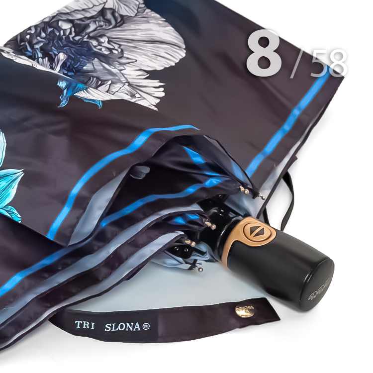 Женский зонт в 3-сложения от компании Три Слона, декорированный панорамным цветочным принтом, не вызывает ничего, кроме восхищения. В зонтике органично сочетаются большие, яркие цветы на синем фоне. Такой рисунок - это уже классика, которая приобрела немыслимую популярность несколько десятилетий назад и, скорее всего, не утратит завоеванных позиций даже в отдаленном будущем.