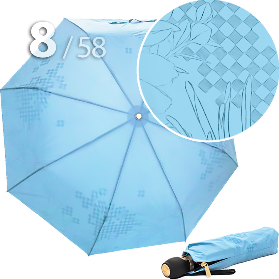 Складной зонт для женщин с куполом "эпонж" от компании Три СлонаЖенский зонт от компании Три Слона в 3-сложения небесно-голубого цвета, декорированный комбинацией графического рисунка цветов и геометрической композицией из квадратов с бабочкой в общей цветовой гамме, смотрится очень гармонично.Полный Автомат - гарантирует легкое и комфортное управление, поскольку нажатием всего одной кнопки зонт можно открыть или закрыть. При полном сложении изделия, купол фиксирует специальный хлястик на металлической кнопке.Ткань купола - полиэстер, обработанный водоотталкивающей пропиткой, которая успешно противостоит воздействию воды, пыли и грязи. Тип переплетения нитей «эпонж»- особая структура плетения, способная отталкивать воду. За счет неравномерного распределения нитей, образовываются узелки. Поверхность получается, как бы губчатой, на ней не задерживается влага - стекает вниз.Ручка - большая и удобная выполнена из пластика с прорезиненным покрытием Soft-touch, которое обеспечивает хорошее сцепление с рукой, что уменьшает скольжение ладони и создает удобство при длительном использовании зонта во время дождя. Прорезиненное покрытие повышает стойкость ручки к повреждениям и царапинам. Дополнена ремешком-петелькой для фиксации зонта на запястье или для подвешивания.Каркас - усиленный на 8-ми спицах из высокопрочных материалов, обеспечивает долгий срок службы изделию.Чехол – на молнии идет в комплекте, для удобства переноски и хранения, в случае сильно мокрого зонта затруднит протекание и намокание сумки.Антиветер – защищает зонт от поломок. Пружинки в конструкции спиц не дают креплениям ломаться, позволяя им выворачиваться в обратную сторону и возвращаться на место. Обращаем ваше внимание, что зонт не рекомендуется использовать при порывах ветра (особенно разнонаправленного), так как зонтик может сломаться. И случай не будет считаться гарантийным.ДЛЯ КОГОДля тех, кто ценит качество и комфорт. Незаменимая защита на случай затяжных осадков. Зонтик будет прекрасно смотреться в любой обстановке и выделит свою владелицу даже среди толпы, состоящей из сотен других людей с красивыми и стильными зонтами.УХОД И ХРАНЕНИЕПосле использования зонт необходимо просушить. После того как зонт высохнет, сложите купол, аккуратно расправляя складки ткани купола. Затем без усилий стянуть хлястиком и убрать сложенный зонт в чехол. Хранить в сухом месте с плюсовой температурой, не допускать складирования сверху зонта других предметов, способных повредить каркас и купол зонта.Возможные загрязнения отмывайте без усилий, теплым мыльным раствором (использование горячей воды, пятновыводителей и других агрессивных жидкостей не допускается).Только в нашем специализированном розничном магазине зонтов и в сравнении с другими аналогами, вы можете оценить качественное преимущество этого зонта, которое не видно по картинке.