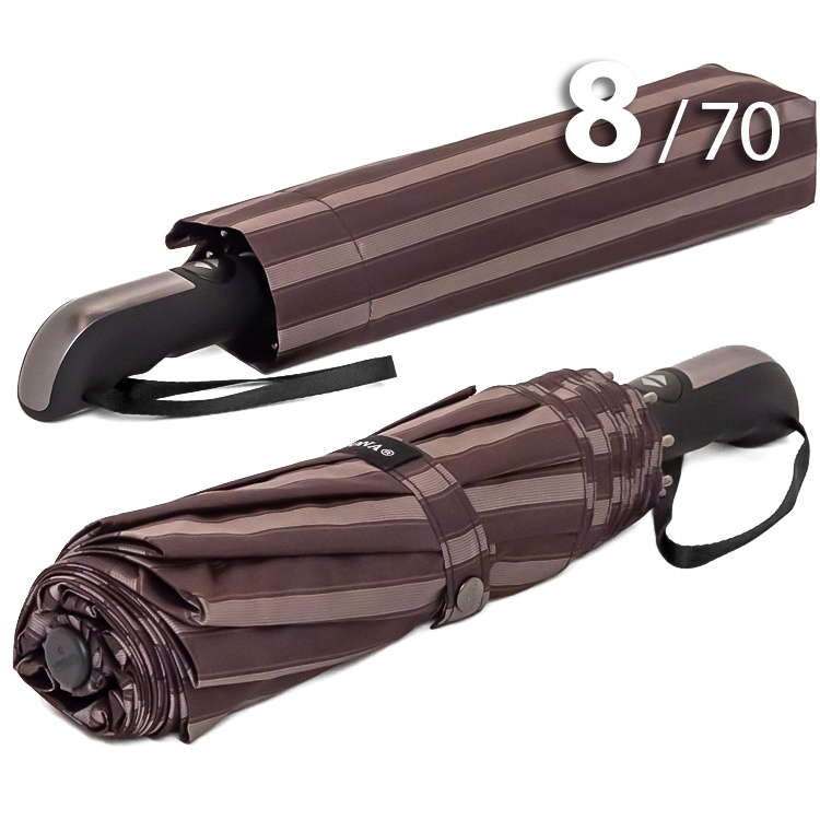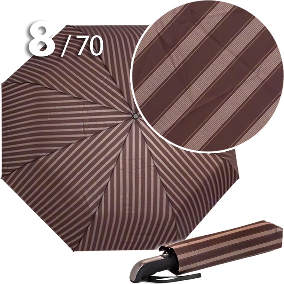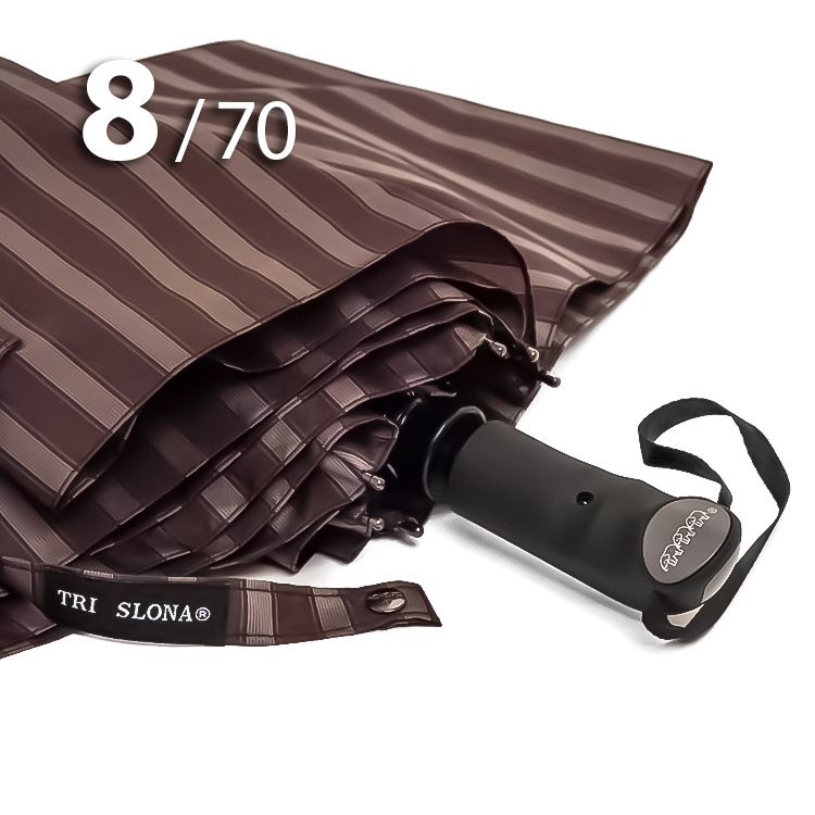 Модель для мужчин с большим куполом в 3-сложения коричневого цвета в продольную серую полоску представляет компания Три Слона.