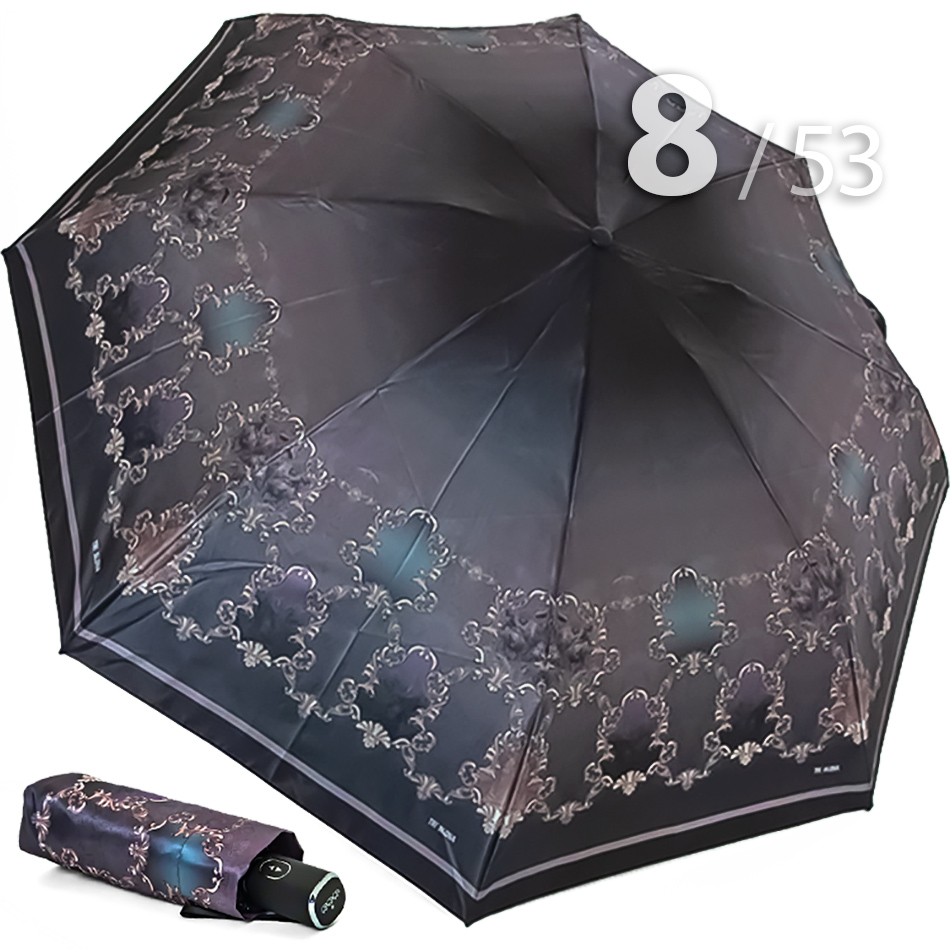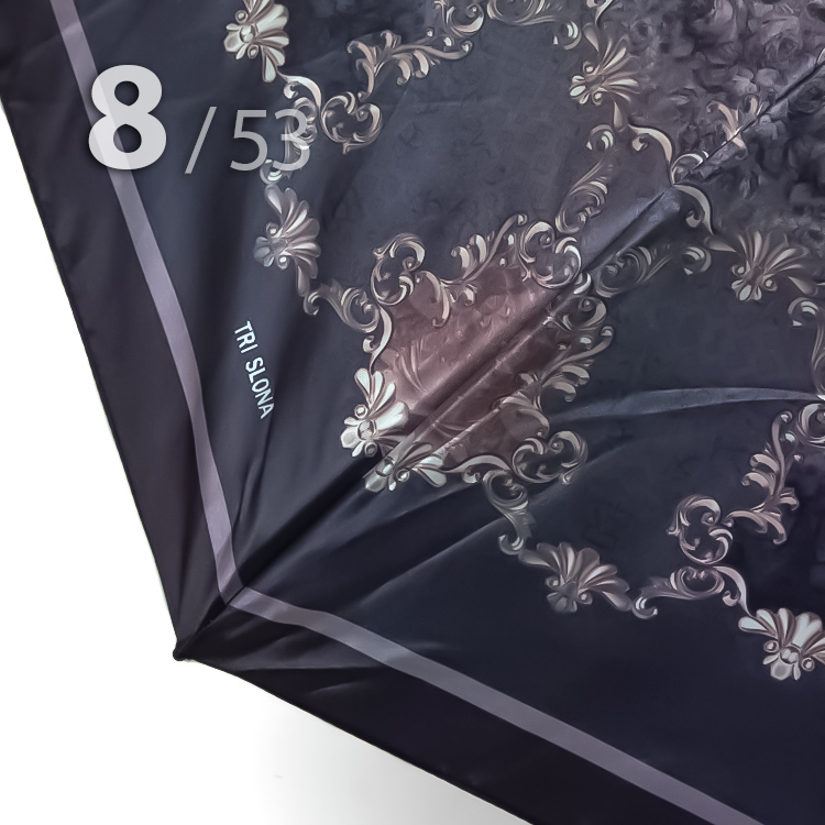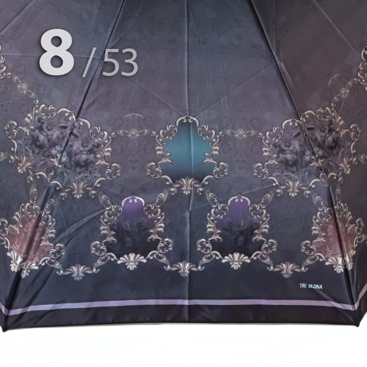Небольшой складной зонт для женщин - идеальный вариант для длительных поездок, когда дождь неизбежен, а удобство превыше всего.Женский зонт, в котором черный фон купола оттеняют узоры, расположившиеся на сиреневом фоне, представляет компания Три Слона. Сочетание оттенков в данной модели смотрится очень стильно и сдержано, поэтому идеально подойдет для женщин, которые не любят яркие рисунки. Преимуществом данного аксессуара являются компактные размеры в сложенном виде и облегченный вес, засчет конструкции в 4-сложения, поэтому он легко поместится в рюкзаке или маленькой сумке.Полный Автомат - гарантирует легкое и комфортное управление, поскольку нажатием всего одной кнопки зонт можно открыть или закрыть. При полном сложении зонта, купол фиксирует специальный хлястик на металлической кнопке.Ткань купола - полиэстер, обработанный водоотталкивающей пропиткой. Вид полотна-сатин, ткань с особым типом переплетения, когда на лицевой стороне перекрытие нитей удлиненное. Сатин- плотный материал отличается от других материалов благородным блеском, гладкостью и практичностью.Ручка - небольшая выполнена из пластика с прорезиненным покрытием Soft-touch, которое обеспечивает хорошее сцепление с рукой, что уменьшает скольжение ладони и создает удобство при длительном использовании зонта во время дождя. Прорезиненное покрытие повышает стойкость ручки к повреждениям и царапинам. Дополнена тесьмой-петелькой для фиксации зонта на запястье или для подвешивания.Каркас - на 8-ми спицах из высокопрочных материалов, которые обеспечивают долгий срок службы изделию.Вес: 320 г - облегченный вес достигается за счет использования очень легких материалов. При этом они отлично показывают себя в характеристиках прочности и надежности.Чехол - стандартный идет в комплекте, для удобства переноски и хранения, в случае сильно мокрого зонта затруднит протекание и намокание сумки.Антиветер - защищает зонт от поломок. Пружинки в конструкции спиц не дают креплениям ломаться, позволяя им выворачиваться в обратную сторону и возвращаться на место. Но обращаем ваше внимание, что зонт не рекомендуется использовать при порывах ветра (особенно разнонаправленного), так как зонтик может сломаться. И случай не будет являться гарантийным.ДЛЯ КОГОМодель для мобильных, деловых и активных - повседневное использование. Оптимальный размер купола позволяет использовать зонт даже в плотном городском потоке.Учитывая компактность и малый вес, его можно брать с собой в поездку или использовать в качестве варианта "на всякий случай", когда вероятность осадков сомнительна.УХОД И ХРАНЕНИЕПосле использования зонт необходимо просушить. После того как зонт высохнет, сложите купол, аккуратно расправляя складки ткани купола. Затем без усилий стянуть хлястиком и убрать сложенный зонт в чехол. Хранить в сухом месте с плюсовой температурой, не допускать складирования сверху зонта других предметов, способных повредить каркас и купол зонта.Возможные загрязнения отмывайте без усилий, теплым мыльным раствором (использование горячей воды, пятновыводителей и других агрессивных жидкостей не допускается).Только в нашем специализированном розничном магазине зонтов и в сравнении с другими аналогами, вы можете оценить качественное преимущество этого зонта, которое не видно по картинке.