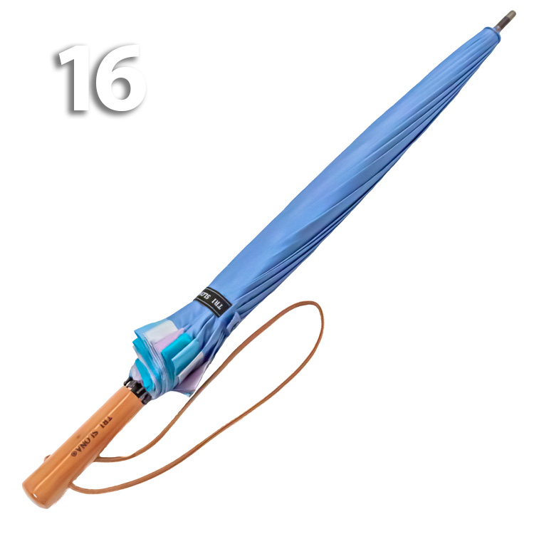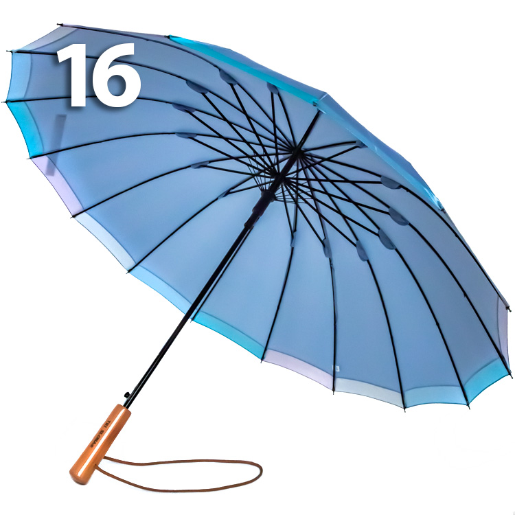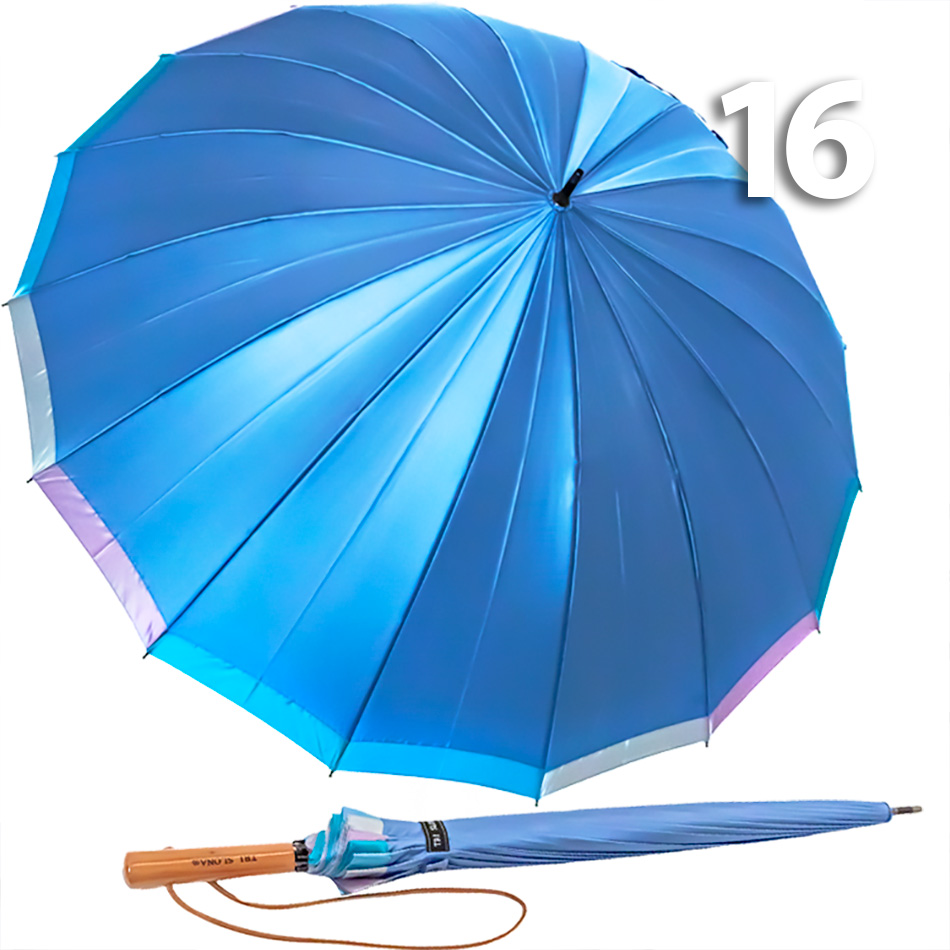 Зонт трость Три Cлона L-2163 18606 Голубой, 16 спиц, ручка дерево