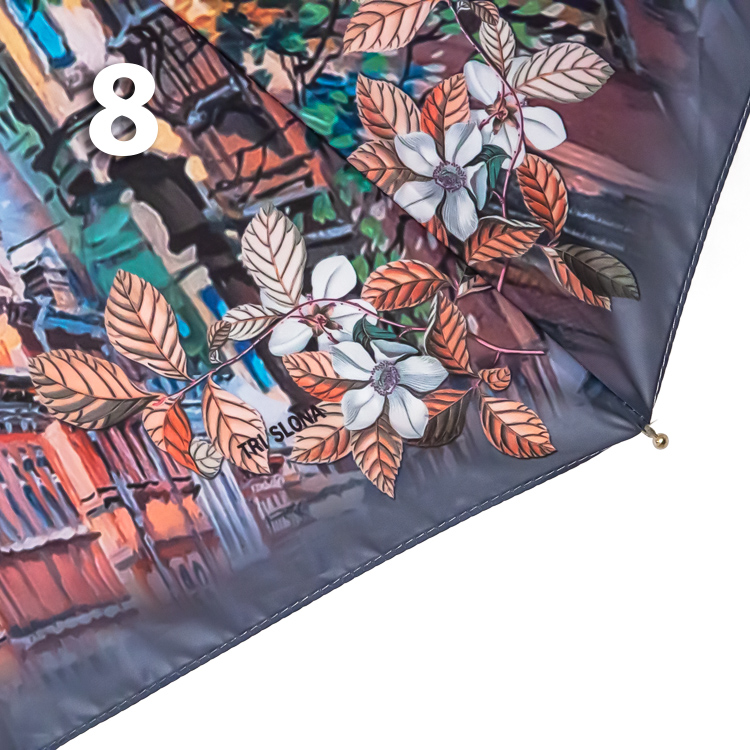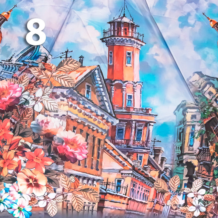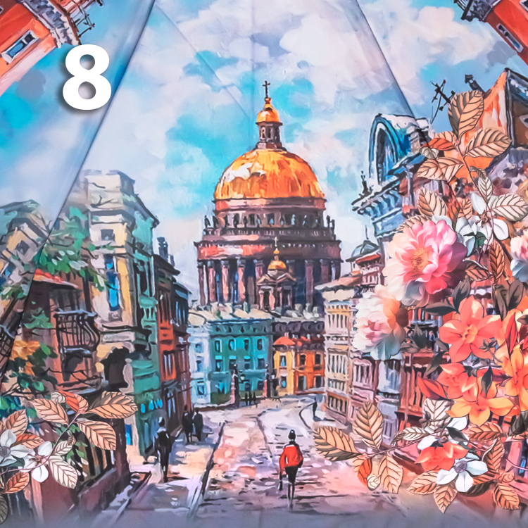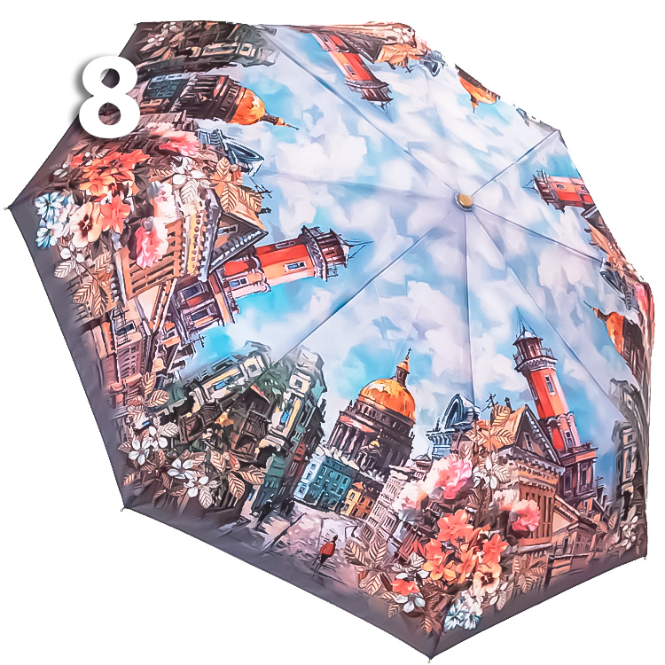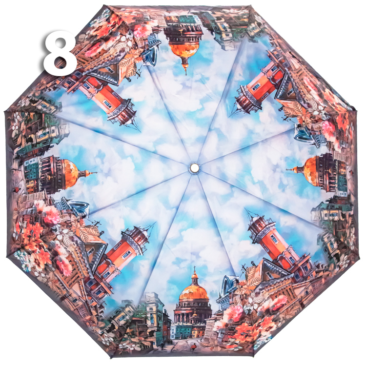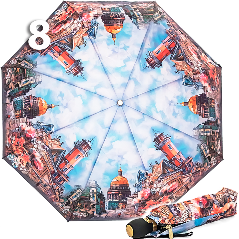 Женский зонт в голубых оттенках с прекрасными видами города на Неве - в который влюбляются, которым восхищаются, и в который возвращаются снова и снова! Средний вес зонта, конструкция в 3-сложения и средние размеры в длину позволяют носить его с собой в рюкзаке или сумке. В диаметре купол увеличенного размера.