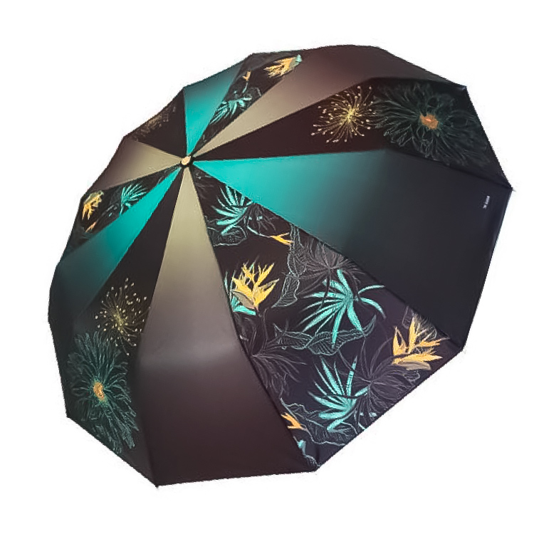 Женский зонт от компании Три Слона с увеличенным в диаметре куполом, в 3-сложения в сдержанной, гармоничной цветовой гамме с чередующимися секторами: одни-однотонные в зеленых оттенках, другие с вдохновленным природой, растительным принтом и графическими цветами на черном фоне, которые будут не только радовать вас даже в самые серые дождливые дни, но и создадут вокруг вас атмосферу уюта и тепла. Данная модель подчеркнет женственность облика и создаст романтическое настроение.
