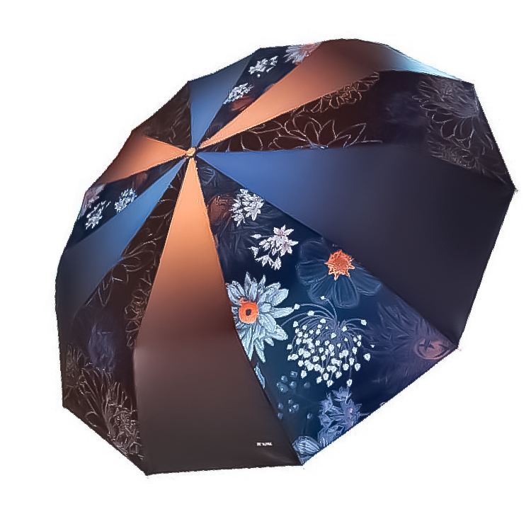 Женский зонт от компании Три Слона с увеличенным в диаметре куполом, в 3-сложения в сдержанной, гармоничной цветовой гамме с чередующимися секторами: одни-однотонные в коричневых, синих оттенках, другие с прекрасными цветами на синем фоне и графическими цветами на черном фоне, которые будут не только радовать вас даже в самые серые дождливые дни, но и создадут вокруг вас атмосферу уюта и тепла. Данная модель подчеркнет женственность облика и создаст романтическое настроение.