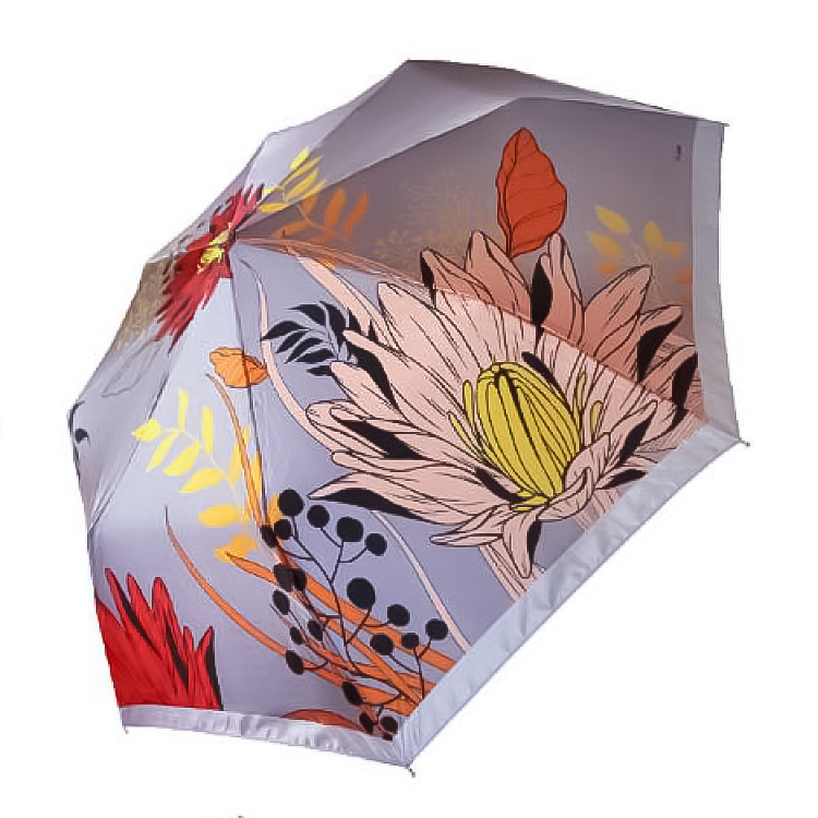 Женский зонт в сером цвете с ярким объемным растительным принтом, который подчеркивает оригинальность дизайна, представляет компания Три Слона. Небольшой светло-серый кант по краю в сочетании с основным цветом купола создаёт природный, гармоничный цветовой баланс. Средний вес зонта, конструкция в 3-сложения и средние размеры в длину позволяют носить его с собой в рюкзаке или сумке. В диаметре купол увеличенного размера.