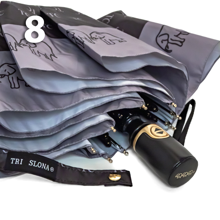 Складной зонт для женщин с логотипом ТС - визитная карточка бренда Три Слона.Женский зонт от компании Три Слона в 3-сложения черного цвета с впечатляющим принтом в виде сочетания инициалов ТС всемирно известного бренда по всему куполу и с широким черным кантом по краю с изображением трех слонов, стоящих друг за другом, делает данную модель узнаваемой. В сложенном виде аксессуар стандартной длины и среднего веса, поэтому легко поместится в сумке или рюкзаке. В диаметре купол увеличенного размера.Полный Автомат - гарантирует легкое и комфортное управление, поскольку нажатием всего одной кнопки зонт можно открыть или закрыть. При полном сложении изделия, купол фиксирует специальный хлястик на металлической кнопке.Ткань купола - полиэстер, обработанный водоотталкивающей пропиткой, которая успешно противостоит воздействию воды, пыли и грязи. Тип переплетения нитей «эпонж»- особая структура плетения, способная отталкивать воду. За счет неравномерного распределения нитей, образовываются узелки. Поверхность получается, как бы губчатой, на ней не задерживается влага - стекает вниз.Ручка - большая и удобная выполнена из экокожи, приятно ложится в руку и придает аксессуару неповторимый внешний вид. Дополнена ремешком-петелькой для фиксации зонта на запястье или для подвешивания.Каркас - усиленный на 8-ми спицах из высокопрочных материалов, обеспечивает долгий срок службы изделию.Чехол – на молнии с украшением в виде подвески с логотипом компании идет в комплекте, для удобства переноски и хранения, в случае сильно мокрого зонта затруднит протекание и намокание сумки.Антиветер – защищает зонт от поломок. Пружинки в конструкции спиц не дают креплениям ломаться, позволяя им выворачиваться в обратную сторону и возвращаться на место. Обращаем ваше внимание, что зонт не рекомендуется использовать при порывах ветра (особенно разнонаправленного), так как зонтик может сломаться. И случай не будет считаться гарантийным.ДЛЯ КОГОДля тех, кто ценит качество и комфорт. Незаменимая защита на случай затяжных осадков.УХОД И ХРАНЕНИЕПосле использования зонт необходимо просушить. После того как зонт высохнет, сложите купол, аккуратно расправляя складки ткани купола. Затем без усилий стянуть хлястиком и убрать сложенный зонт в чехол. Хранить в сухом месте с плюсовой температурой, не допускать складирования сверху зонта других предметов, способных повредить каркас и купол зонта.Возможные загрязнения отмывайте без усилий, теплым мыльным раствором (использование горячей воды, пятновыводителей и других агрессивных жидкостей не допускается).Только в нашем специализированном розничном магазине зонтов и в сравнении с другими аналогами, вы можете оценить качественное преимущество этого зонта, которое не видно по картинке.