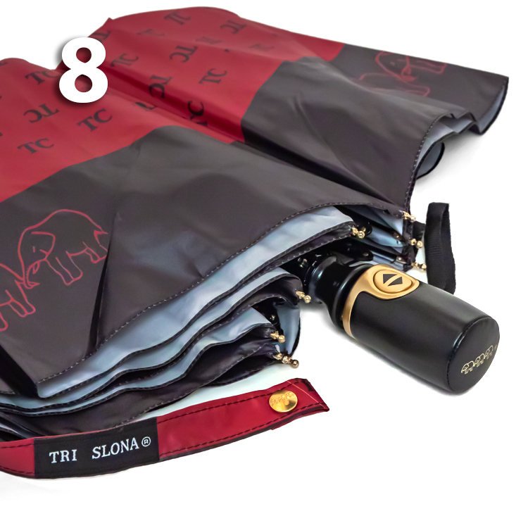 Складной зонт для женщин с логотипом ТС - визитная карточка бренда Три Слона.Женский зонт от компании Три Слона в 3-сложения красного цвета с впечатляющим принтом в виде сочетания инициалов ТС всемирно известного бренда по всему куполу и с широким черным кантом по краю с изображением трех слонов, стоящих друг за другом, делает данную модель узнаваемой. В сложенном виде аксессуар стандартной длины и среднего веса, поэтому легко поместится в сумке или рюкзаке. В диаметре купол увеличенного размера.Полный Автомат - гарантирует легкое и комфортное управление, поскольку нажатием всего одной кнопки зонт можно открыть или закрыть. При полном сложении изделия, купол фиксирует специальный хлястик на металлической кнопке.Ткань купола - полиэстер, обработанный водоотталкивающей пропиткой, которая успешно противостоит воздействию воды, пыли и грязи. Тип переплетения нитей «эпонж»- особая структура плетения, способная отталкивать воду. За счет неравномерного распределения нитей, образовываются узелки. Поверхность получается, как бы губчатой, на ней не задерживается влага - стекает вниз.Ручка - большая и удобная выполнена из экокожи, приятно ложится в руку и придает аксессуару неповторимый внешний вид. Дополнена ремешком-петелькой для фиксации зонта на запястье или для подвешивания.Каркас - усиленный на 8-ми спицах из высокопрочных материалов, обеспечивает долгий срок службы изделию.Чехол – на молнии с украшением в виде подвески с логотипом компании идет в комплекте, для удобства переноски и хранения, в случае сильно мокрого зонта затруднит протекание и намокание сумки.Антиветер – защищает зонт от поломок. Пружинки в конструкции спиц не дают креплениям ломаться, позволяя им выворачиваться в обратную сторону и возвращаться на место. Обращаем ваше внимание, что зонт не рекомендуется использовать при порывах ветра (особенно разнонаправленного), так как зонтик может сломаться. И случай не будет считаться гарантийным.ДЛЯ КОГОДля тех, кто ценит качество и комфорт. Незаменимая защита на случай затяжных осадков.УХОД И ХРАНЕНИЕПосле использования зонт необходимо просушить. После того как зонт высохнет, сложите купол, аккуратно расправляя складки ткани купола. Затем без усилий стянуть хлястиком и убрать сложенный зонт в чехол. Хранить в сухом месте с плюсовой температурой, не допускать складирования сверху зонта других предметов, способных повредить каркас и купол зонта.Возможные загрязнения отмывайте без усилий, теплым мыльным раствором (использование горячей воды, пятновыводителей и других агрессивных жидкостей не допускается).Только в нашем специализированном розничном магазине зонтов и в сравнении с другими аналогами, вы можете оценить качественное преимущество этого зонта, которое не видно по картинке.
