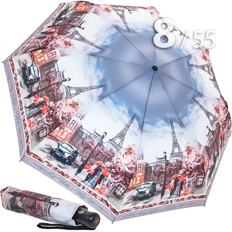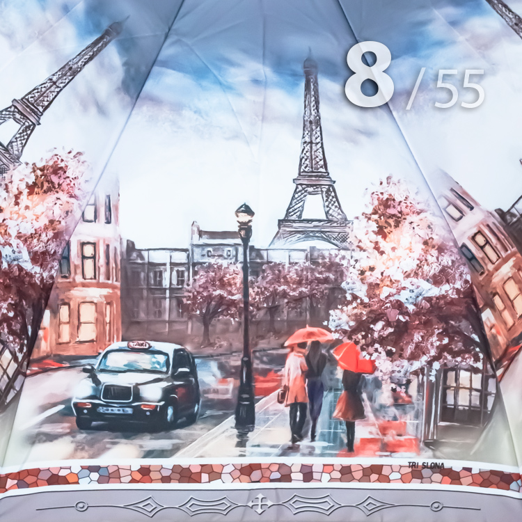 Стильный женский зонт с изображением Эйфелевой башни —яркий аксессуар, подчеркивающий ваш образ. Модель от проверенного производителя "Три слона" сочетает в себе качество, функциональность и элегантность.