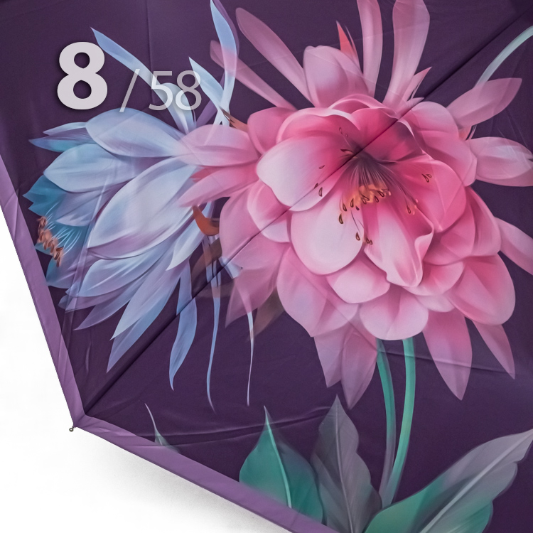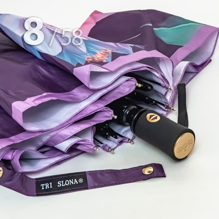 Зонт "Три Слона" L-3848 (A) 18843 Цветы ФиолетовыйСтильный женский зонт — надежный защитник в дождливую погоду и яркий аксессуар, подчеркивающий ваш образ. Модель от проверенного производителя "Три слона" сочетает в себе качество, функциональность и элегантность.Купол насыщенного фиолетового цвета украшен панорамным принтом, на котором изображены крупные розово-голубые цветы.Удобный, практичный женский зонт от дождя для ежедневного использования, отлично подойдет для городской жизни, поместится в сумке или рюкзаке и подойдет:• на работу• в поездки• в командировки• «на всякий случай», если прогноз погоды сомнительный• идеален для городаОсобенности конструкции3 сложения — удобно брать с собой, занимает минимум места, легко поместится в сумке или рюкзаке8 спиц — для устойчивости и надежной формы куполаКаркас — сталь и фибергласс, сочетают прочность и гибкость, чтобы выдерживать умеренный ветер.Полный автомат —Механизм гарантирует лёгкое и комфортное управление: нажатием всего одной кнопки зонт можно мгновенно раскрыть или сложить. После полного закрытия купол надёжно фиксируется специальным хлястиком на металлической кнопке, что предотвращает самопроизвольное раскрытие и обеспечивает удобство переноски.Особенности механизма:• Автоматическое раскрытие, купол выходит в рабочее положение за секунды• Автоматическое складывание, механизм самостоятельно собирает спицы и ткань в компактное положение• Система фиксации, хлястик с кнопкой надёжно удерживает сложенный зонт• Безопасность, механизм исключает риск защемления пальцев при использованииЭтот механизм особенно удобен в ситуациях, когда нужно быстро открыть зонт одной рукой, например, при внезапном дожде или при переноске сумок.Ткань купола — полиэстер.Защитные свойства: ткань обработана специальной водоотталкивающей пропиткой, что делает зонт максимально практичным и устойчивым к загрязнениям.Ручка —удобная эргономичная ручка с прорезиненным покрытием Soft-touch повышает ее устойчивость к царапинам и сколам. Не скользит и комфортно лежит в ладони даже при долгой прогулке. Для дополнительного удобства предусмотрен ремешок, который позволяет закрепить зонт на запястье или подвесить его при хранении.Чехол в комплекте — с зонтом идет практичный чехол на молнии, который защищает содержимое сумки от влаги, если зонт намок. Стандартный чехол на молнии также надежно защитит сам зонт от повреждений и загрязнений при хранении.Антиветер — Конструкция спиц оснащена пружинными элементами, которые при порывах ветра позволяют куполу выворачиваться и возвращаться в исходное положение. Это снижает риск поломки и продлевает срок службы изделия.Важно помнить: зонт предназначен для защиты от атмосферных осадков и солнечных лучей. Использование изделия при сильном порывистом или разнонаправленном ветре не рекомендуется, так как это может привести к повреждениям (данный случай не является гарантийным).Гарантия — 6 месяцевРекомендации по уходу и хранению:1. После использования под дождем обязательно просушите зонт в открытом виде в хорошо проветриваемом помещении. Не убирайте его влажным, чтобы избежать появления плесени и запаха.2. Перед тем как сложить, аккуратно расправьте складки ткани на куполе, чтобы они не замялись и не деформировались.3. Сложите зонт, закре