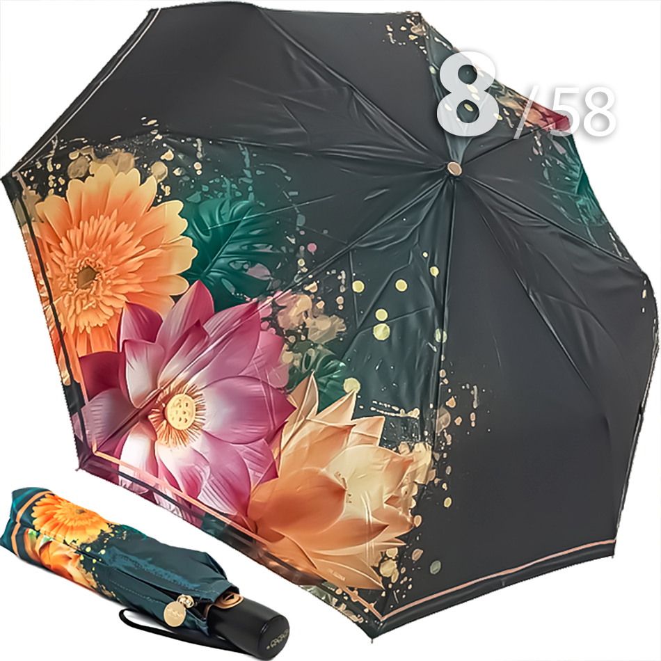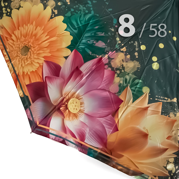 L-3825 (Q26) 18849 Цветы зеленый (сатин)Стильный женский зонт — надежный защитник в дождливую погоду и яркий аксессуар, подчеркивающий ваш образ. Модель от проверенного производителя "Три слона" сочетает в себе качество, функциональность и элегантность.Тёмно‑зелёный купол декорирован фотопринтом: на нём распустились крупные жёлтые и розовые цветы. Контраст оттенков создаёт выразительный и запоминающийся образ..Удобный, практичный женский зонт от дождя для ежедневного использования, отлично подойдет для городской жизни, поместится в сумке или рюкзаке и подойдет:• на работу• в поездки• в командировки• «на всякий случай», если прогноз погоды сомнительный• идеален для городаОсобенности конструкции3 сложения — удобно брать с собой, легко поместится в сумке или рюкзаке8 спиц — для устойчивости и надежной формы куполаКаркас — сталь и фибергласс, сочетают прочность и гибкость, чтобы выдерживать умеренный ветер.Полный автомат —Механизм гарантирует лёгкое и комфортное управление: нажатием всего одной кнопки зонт можно мгновенно раскрыть или сложить. После полного закрытия купол надёжно фиксируется специальным хлястиком на металлической кнопке, что предотвращает самопроизвольное раскрытие и обеспечивает удобство переноски.Особенности механизма:• Автоматическое раскрытие, купол выходит в рабочее положение за секунды• Автоматическое складывание, механизм самостоятельно собирает спицы и ткань в компактное положение• Система фиксации, хлястик с кнопкой надёжно удерживает сложенный зонт• Безопасность, механизм исключает риск защемления пальцев при использованииЭтот механизм особенно удобен в ситуациях, когда нужно быстро открыть зонт одной рукой, например, при внезапном дожде или при переноске сумок.Ткань купола —полиэстер с плетением «сатин». Благодаря особому типу переплетения с удлиненными нитями на лицевой стороне, материал обладает благородным блеском и исключительной гладкостью. Защитные свойства: ткань обработана специальной водоотталкивающей пропиткой, что в сочетании с плотностью сатина делает зонт максимально практичным и устойчивым к загрязнениям.Ручка — большая и удобная, выполнена из искусственной кожи, приятно ложится в руку и придает аксессуару неповторимый внешний вид. Для дополнительного удобства предусмотрен ремешок, который позволяет закрепить зонт на запястье или подвесить его при хранении.Чехол в комплекте — с зонтом идет практичный чехол на молнии, который защищает содержимое сумки от влаги, если зонт намок. Стандартный чехол на молнии также надежно защитит сам зонт от повреждений и загрязнений при хранении.Антиветер — Конструкция спиц оснащена пружинными элементами, которые при порывах ветра позволяют куполу выворачиваться и возвращаться в исходное положение. Это снижает риск поломки и продлевает срок службы изделия.Важно помнить: зонт предназначен для защиты от атмосферных осадков и солнечных лучей. Использование изделия при сильном порывистом или разнонаправленном ветре не рекомендуется, так как это может привести к повреждениям (данный случай не является гарантийным).Гарантия — 6 месяцевРекомендации по уходу и хранению:1. После использования под дождем обязательно просушите зонт в открытом виде в хорошо проветриваемом помещении. Не убирайте его влажным, чтобы избежать 