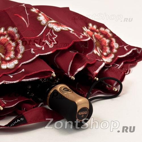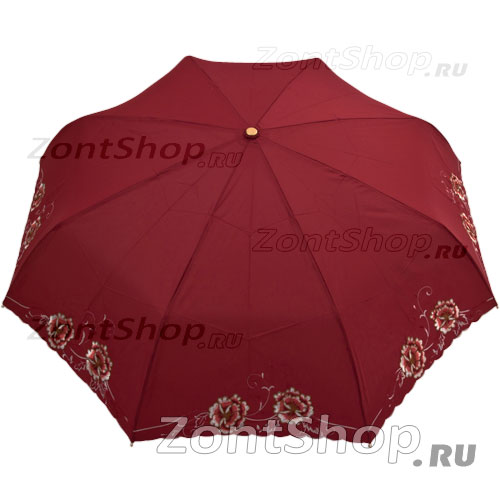 Зонт женский Три Слона 180 вышивка в сумке 3650 Бордо (полный автомат) купол-102см