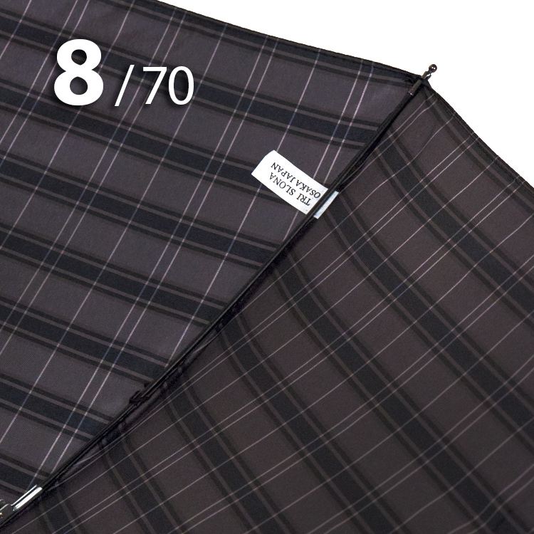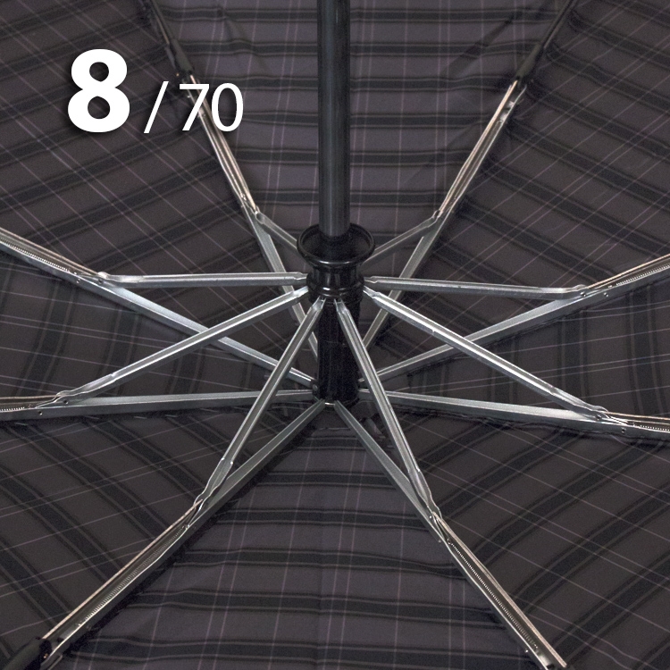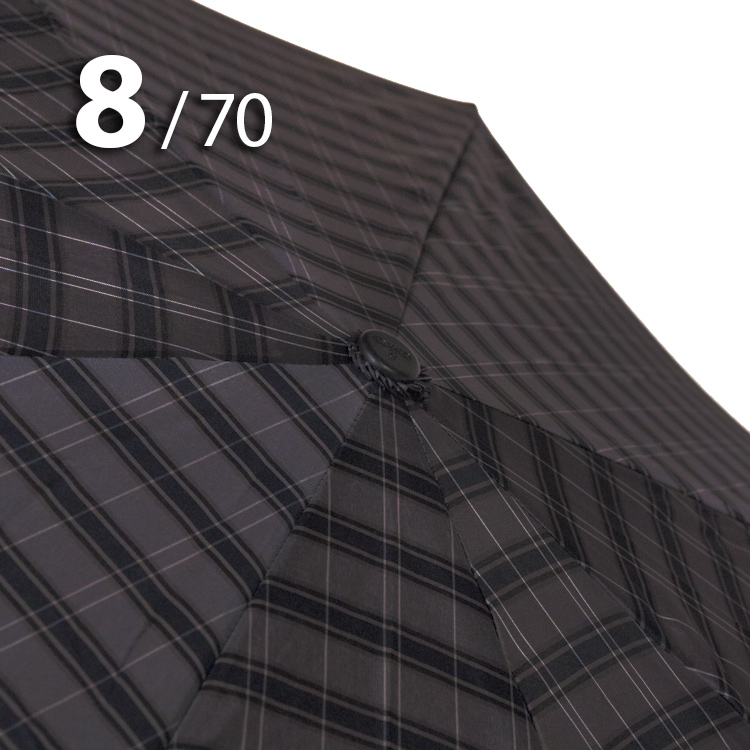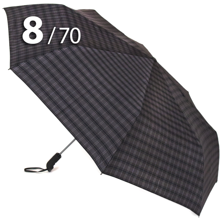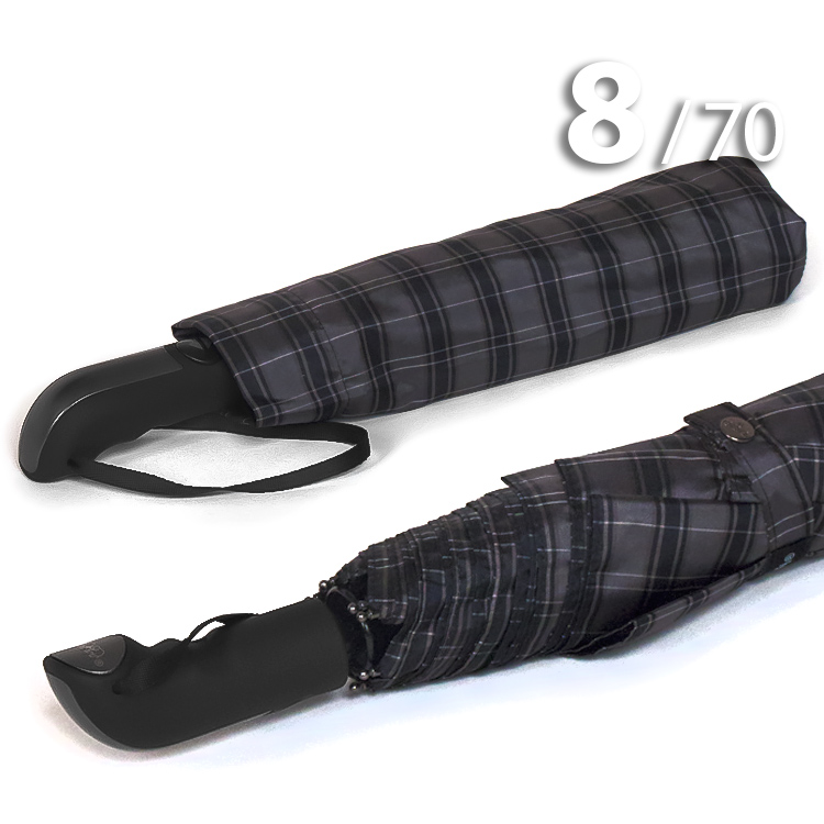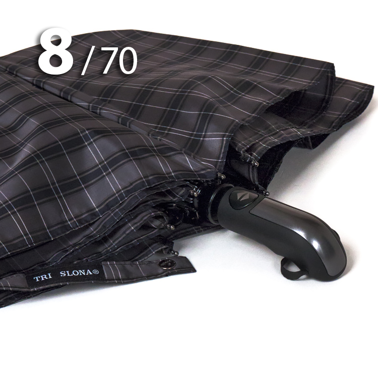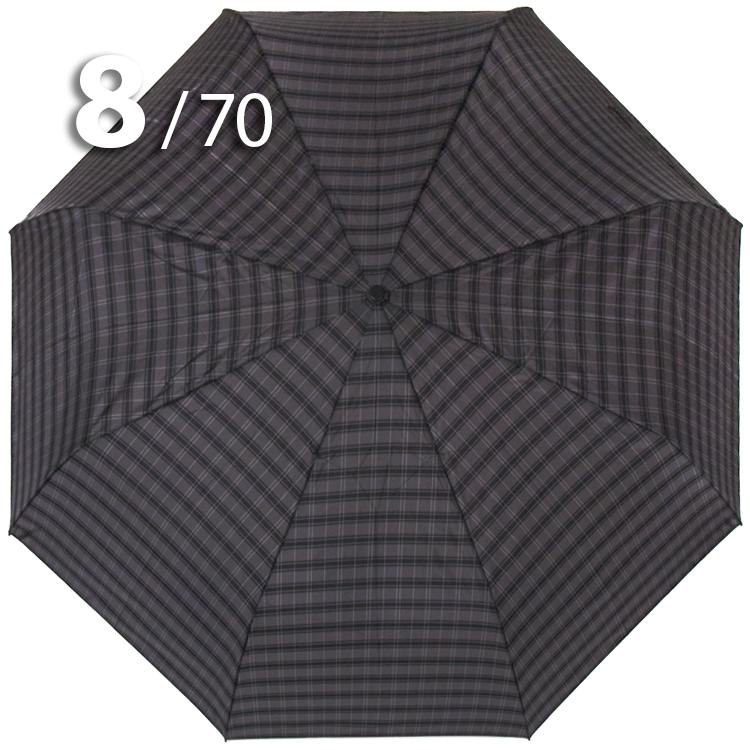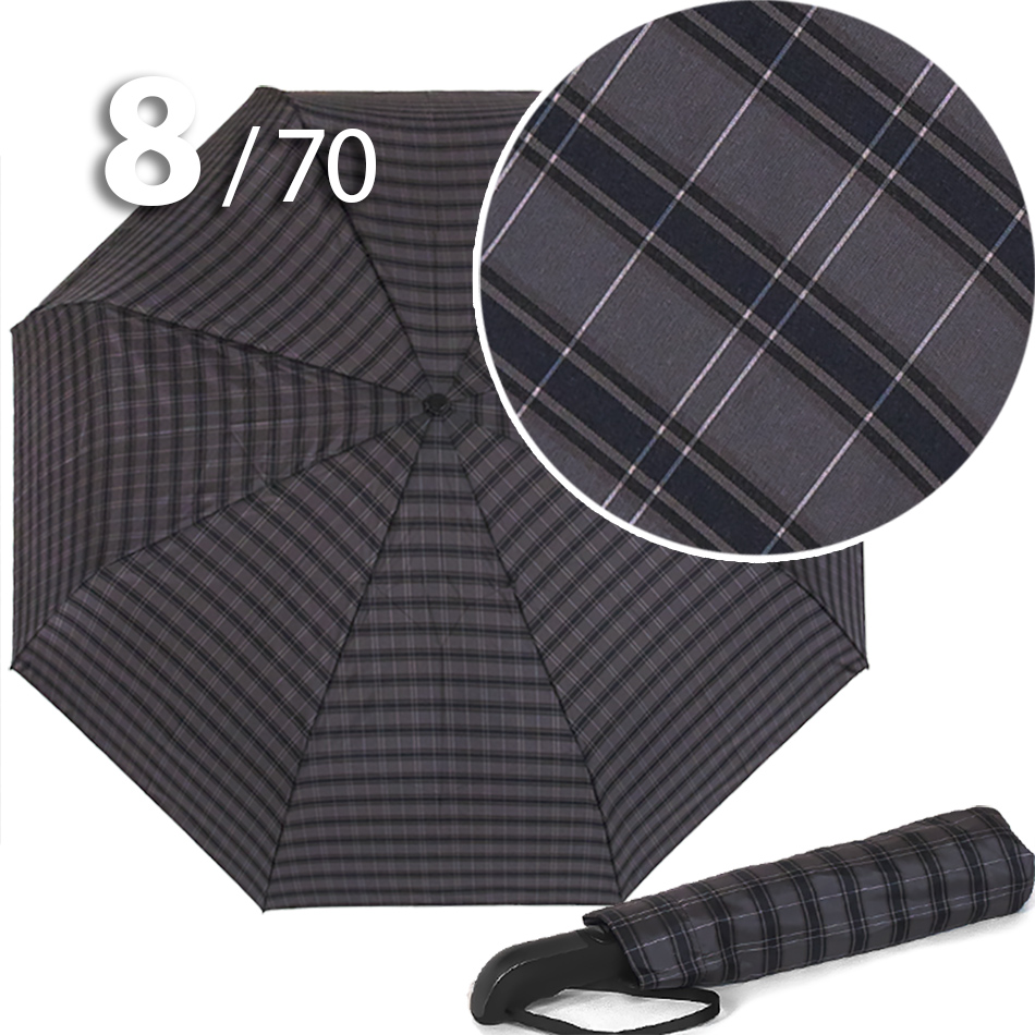 Модель для мужчин с очень большим куполом в 3-сложения серого цвета в клетку, сформированную из полос синего, белого цветов, представляет компания Три Слона.