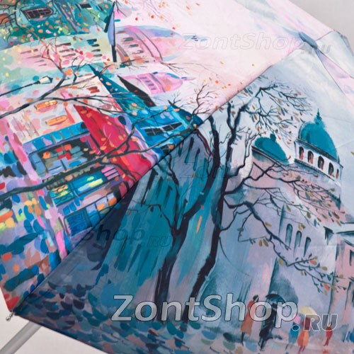 Удобный и яркий - вот основные характеристики этого аксессуара, украшенного оригинальным рисунком, выполненном в акварельной технике. Основное и главное преимущество зонта - его компактность и вес, поэтому его можно смело положить даже в маленькую женскую сумочку и носить с собой каждый день. Удобная для длительного ношения ручка эргономичной формы выполнена из полимерного материала и прекрасно сохраняет тепло, а купол небольшого диаметра прекрасно выполняет свои функции по защите от дождя.