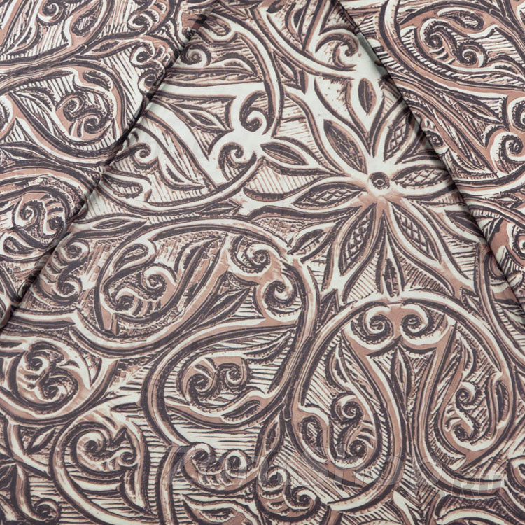 Узор на куполе этой модели выполнен с такой реалистичностью, что кажется, будто рисунок выступает над поверхностью ткани, создавая при этом иллюзию трехмерного изображения. Этот оригинальный аксессуар не останется незамеченным даже при условии, что в его цветах преобладают пастельные бежевые тона.
