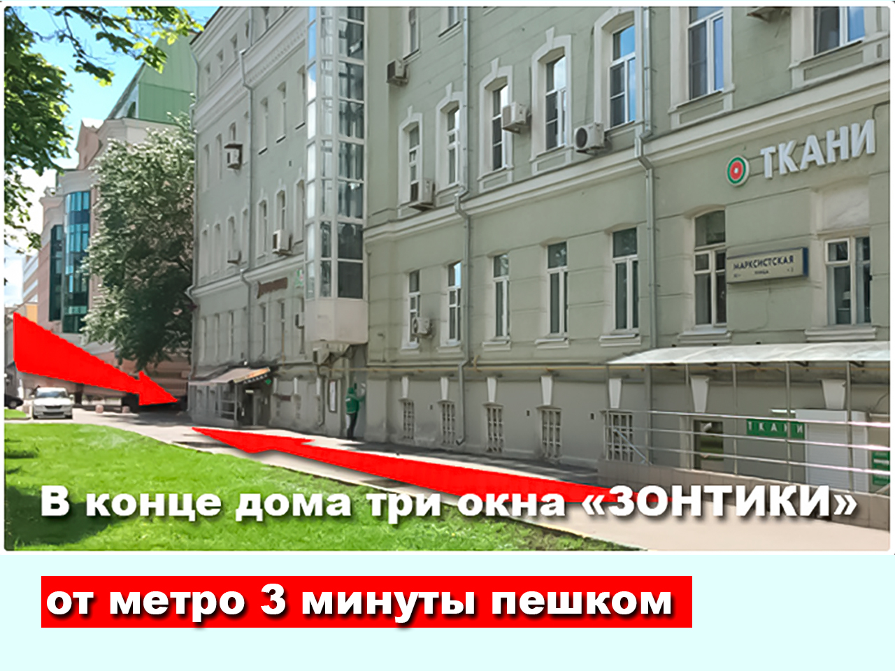 Подняться по эскалатору. Выход №5. Из стеклянных дверей прямо вперед по ступенькам наверх. На улице, четная сторона - прямо 2-3 минуты никуда не сворачивая (от Таганской площади). Третий дом от метро (жилой, салатовый). Вывеска "Зонтики"